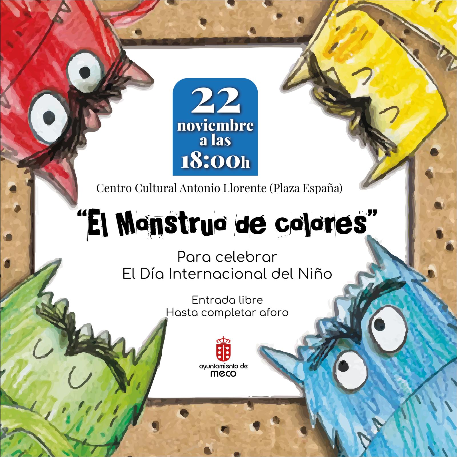 El Monstruo de Colores es la pieza cultural que hemos elegido para conmemorar por todo lo alto el Día Internacional del Niño en Meco. El sábado 22 de noviembre, a las 18.00h, el Centro Cultural de la Plaza de España nos espera para disfrutar del teatro y de los valores que promueve.