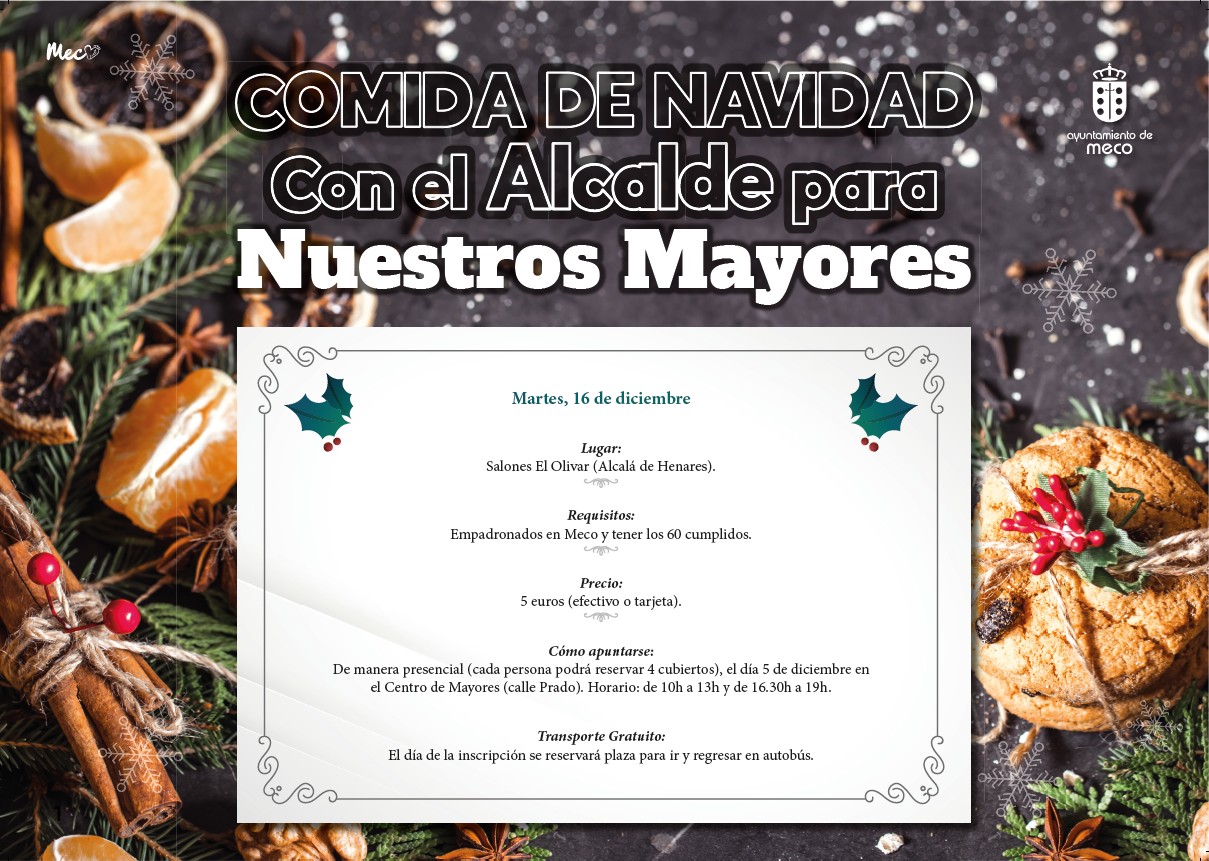 Los mayores de Meco dan el pistoletazo de salida a la Navidad con la tradicional comida y brindis junto al alcalde, Pedro Luis Sanz. Será el martes 16 de diciembre pero, para organizar todo como es debido, las inscripciones hay que hacerlas mañana viernes, 5 de diciembre, en el Centro Municipal de Mayores.