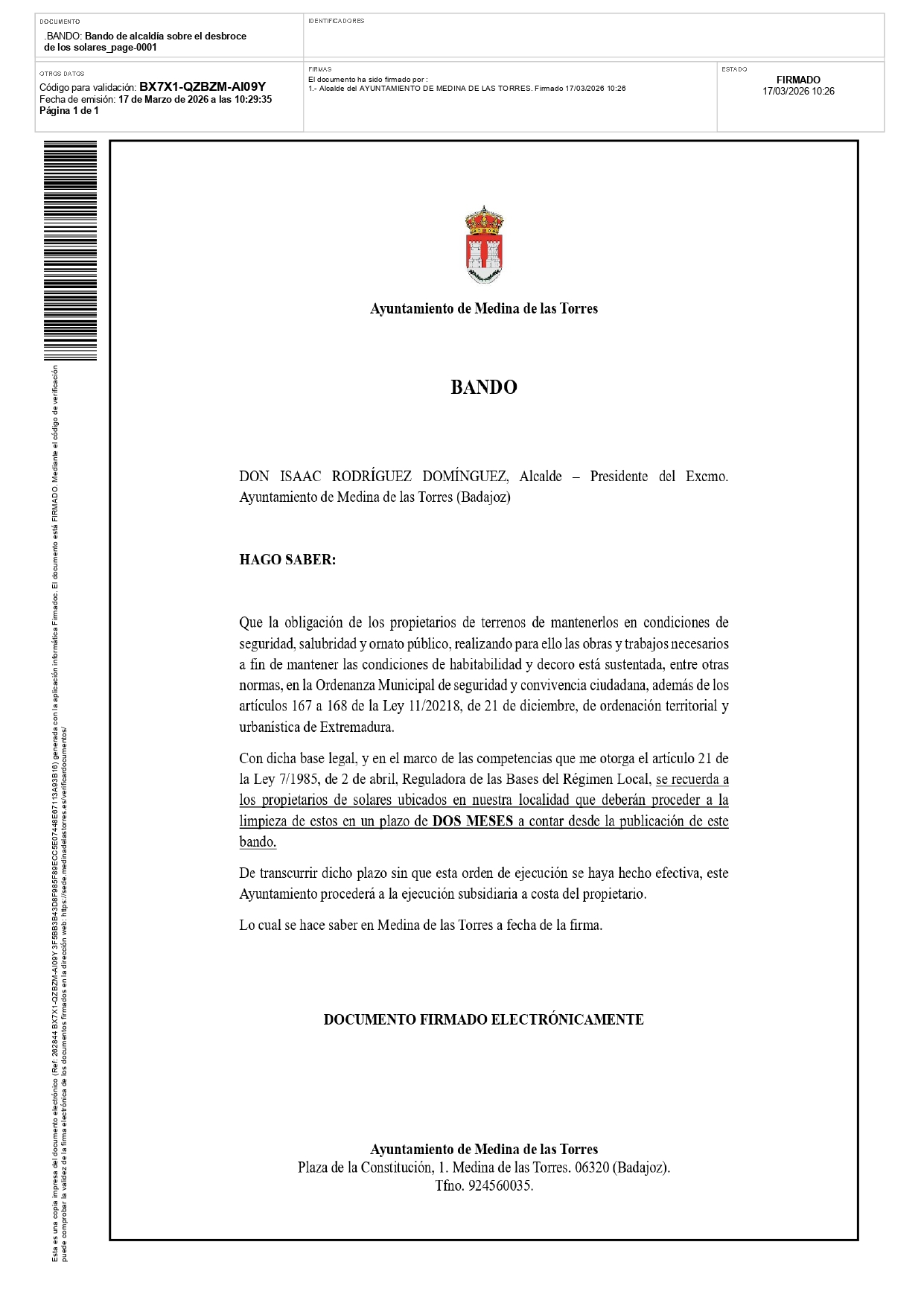 Medina de las Torres Informa