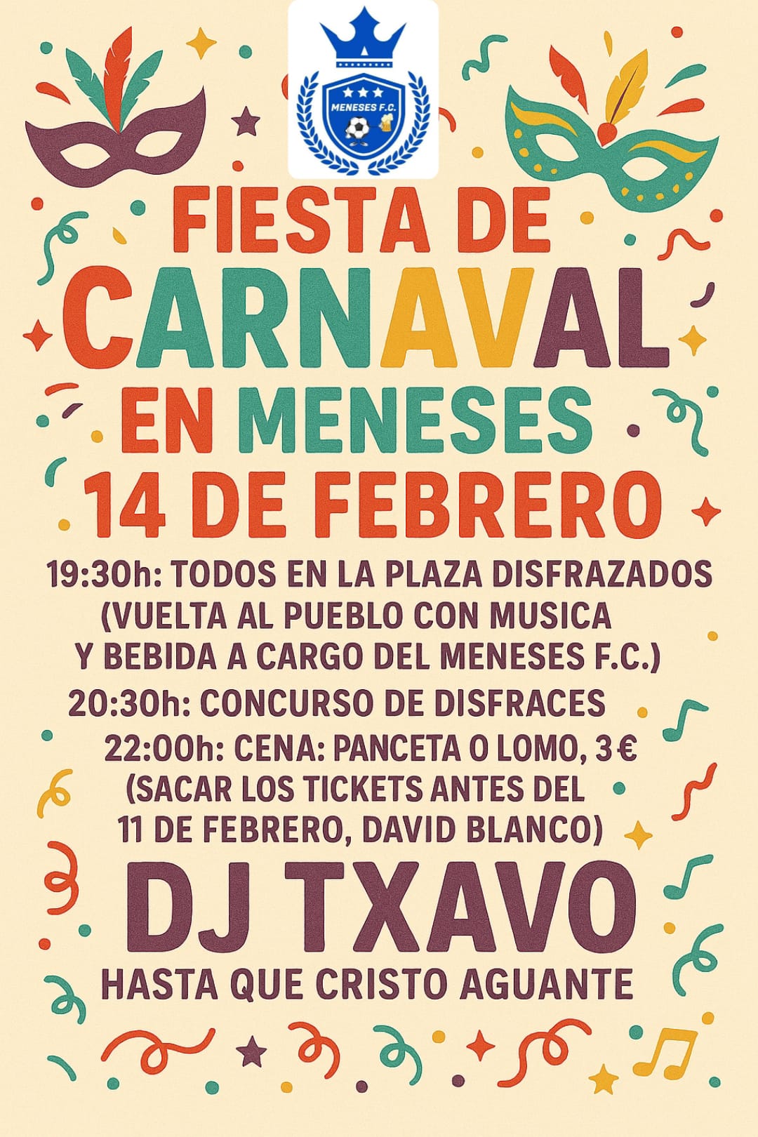 Fiesta de CARNAVAL en Meneses 14 de Febrero