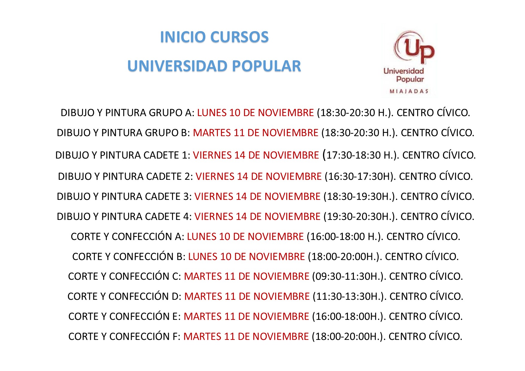 Recordatorio: En esta semana, comienzan los cursos de la Universidad Popular