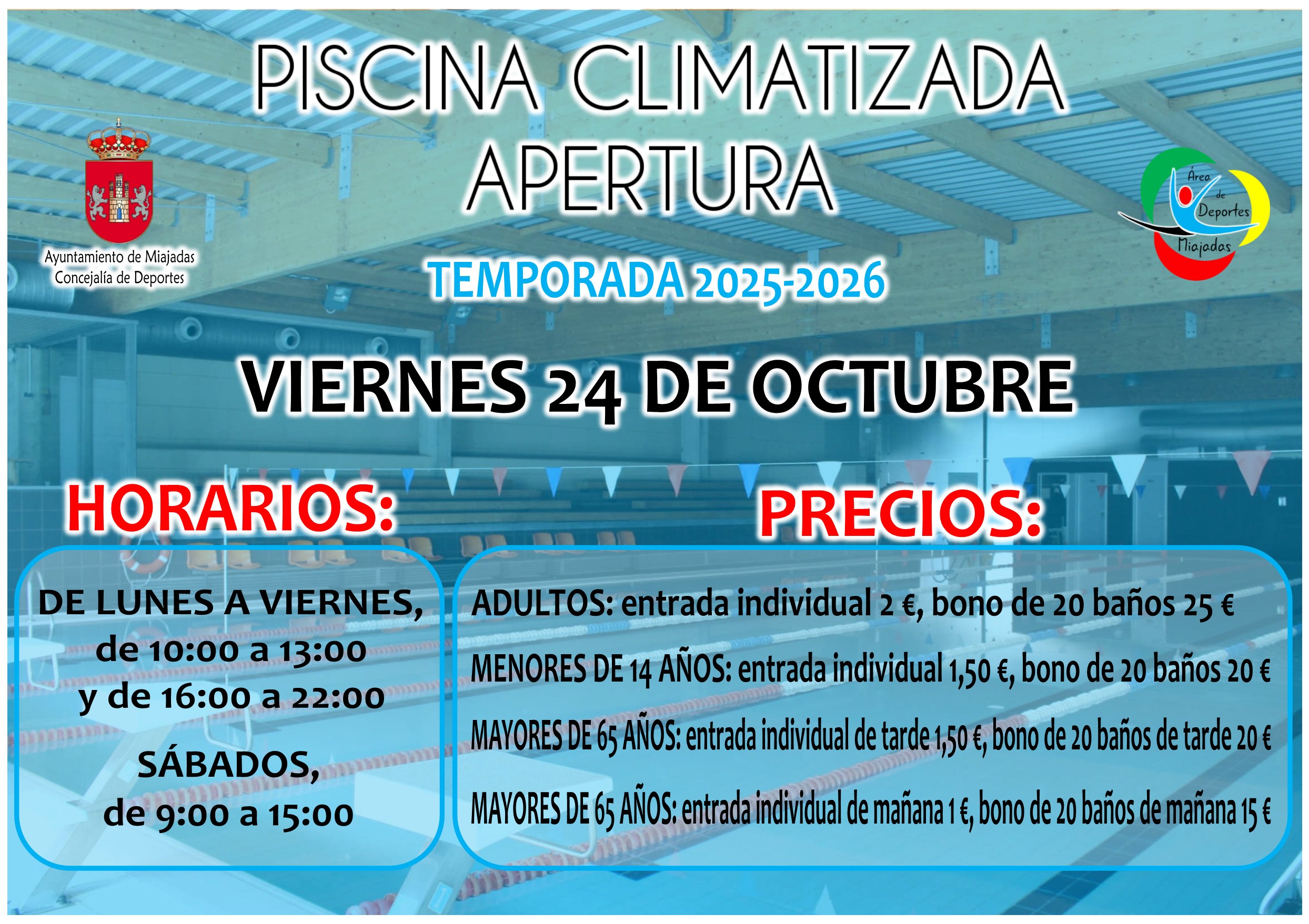 A partir de MAÑANA, VIERNES 24 de octubre, ven a disfrutar de tus baños y entrenamientos en las mejores instalaciones durante esta temporada de baño 2025/2026.