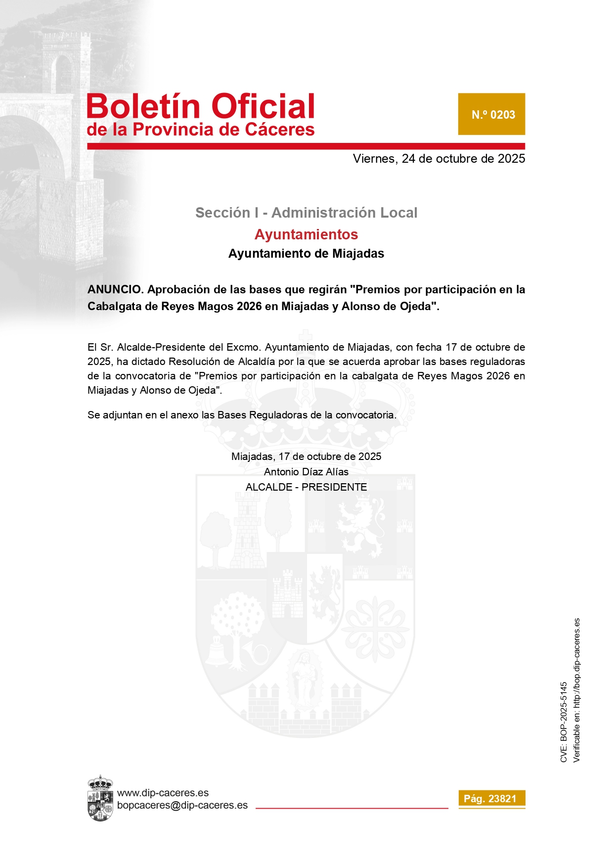 Si deseas participar en la Cabalgata de Reyes en Miajadas y Alonso de Ojeda, ya se encuentra disponible toda la información.