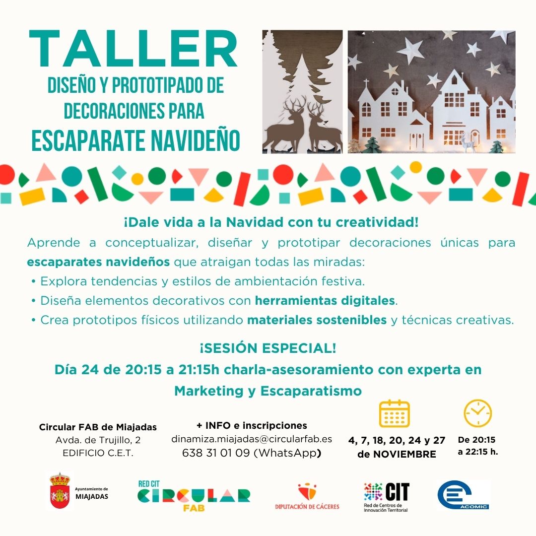 Si quieres darle al escaparatismo navideño un toque de magia, ayudando a la atracción de clientes y potenciación de ventas, ¡no te lo pierdas!... Y apúntate al Taller de Diseño y Prototipado de Decoraciones Navideñas, donde aprenderás a crear piezas únicas que llenen tu negocio de espíritu festivo, combinando creatividad, materiales y técnicas visuales; además, contaremos con la visita de una profesional del escaparatismo y marketing, que compartirá pequeños t(...)