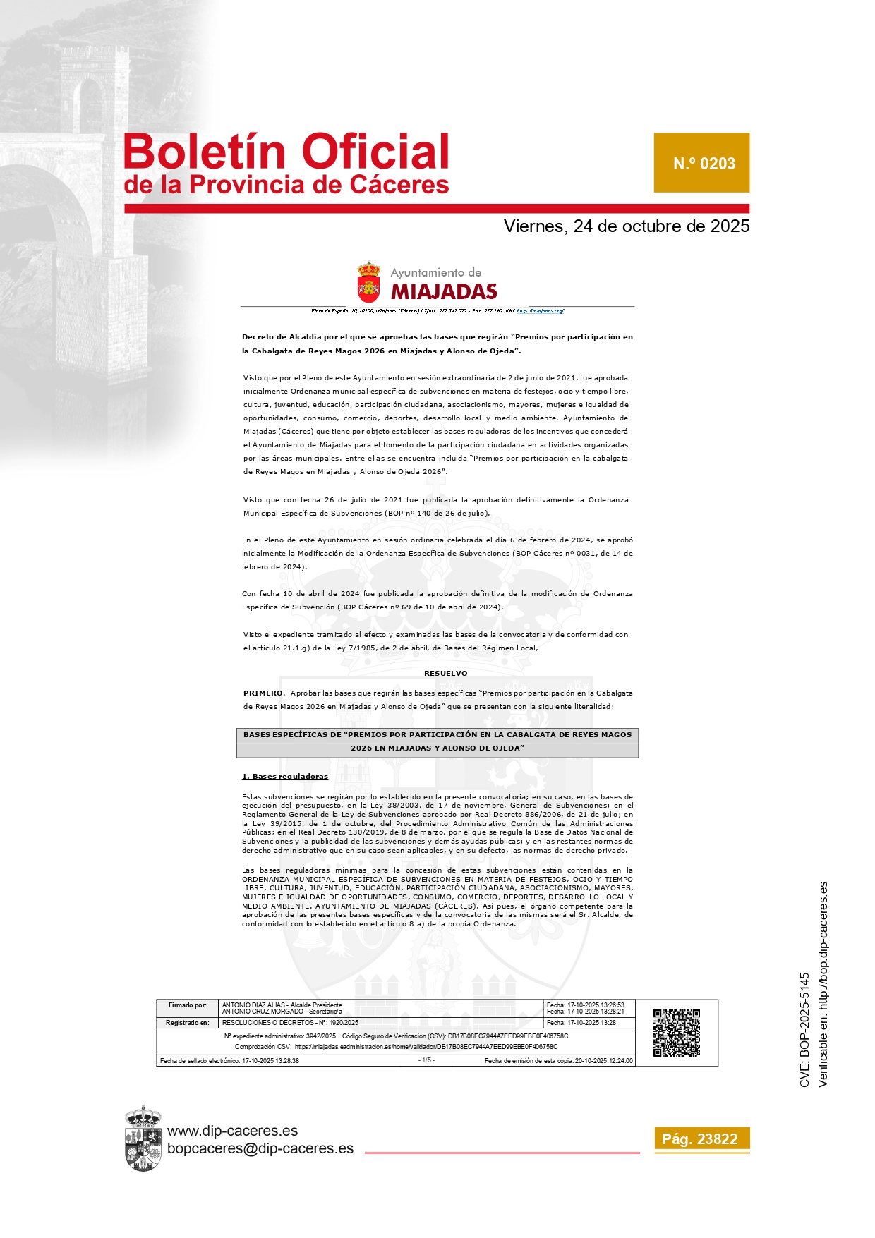 La entrega de premios se hará en una gala pública, en Miajadas, el viernes, 30 de enero de 2026.