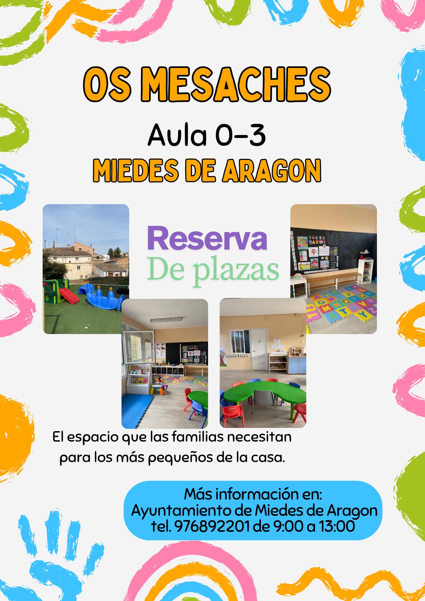APERTURA DEL PLAZO DE PREINSCRIPCIÓN PARA EL CURSO 26-27 DEL AULA INFANTIL "OS MESACHES" DE MIEDES DE ARAGÓN