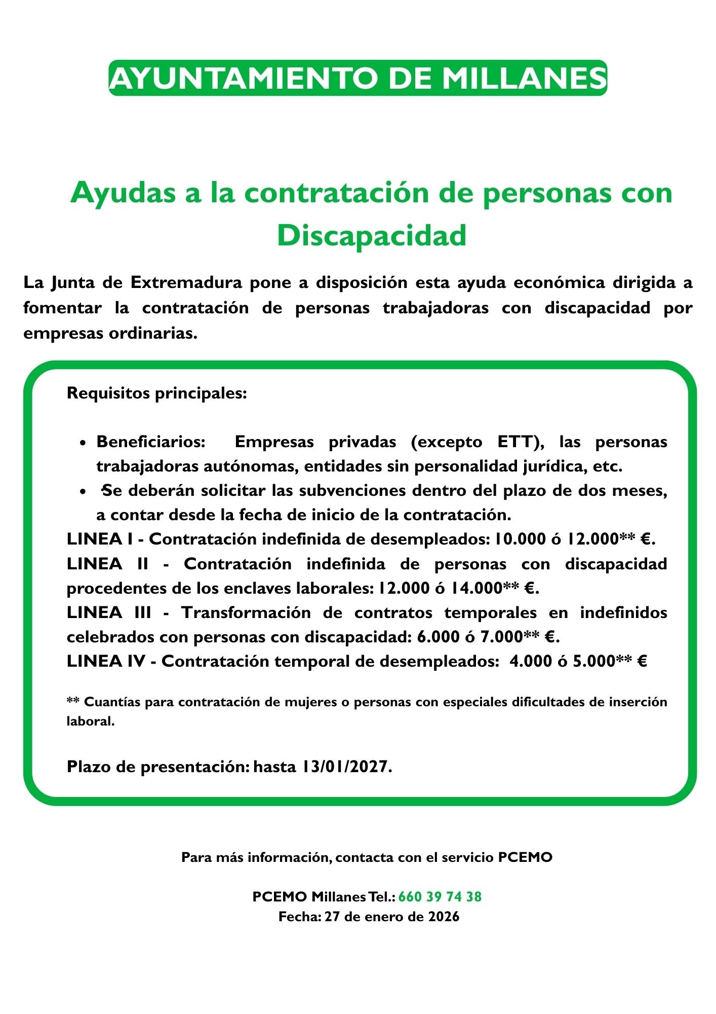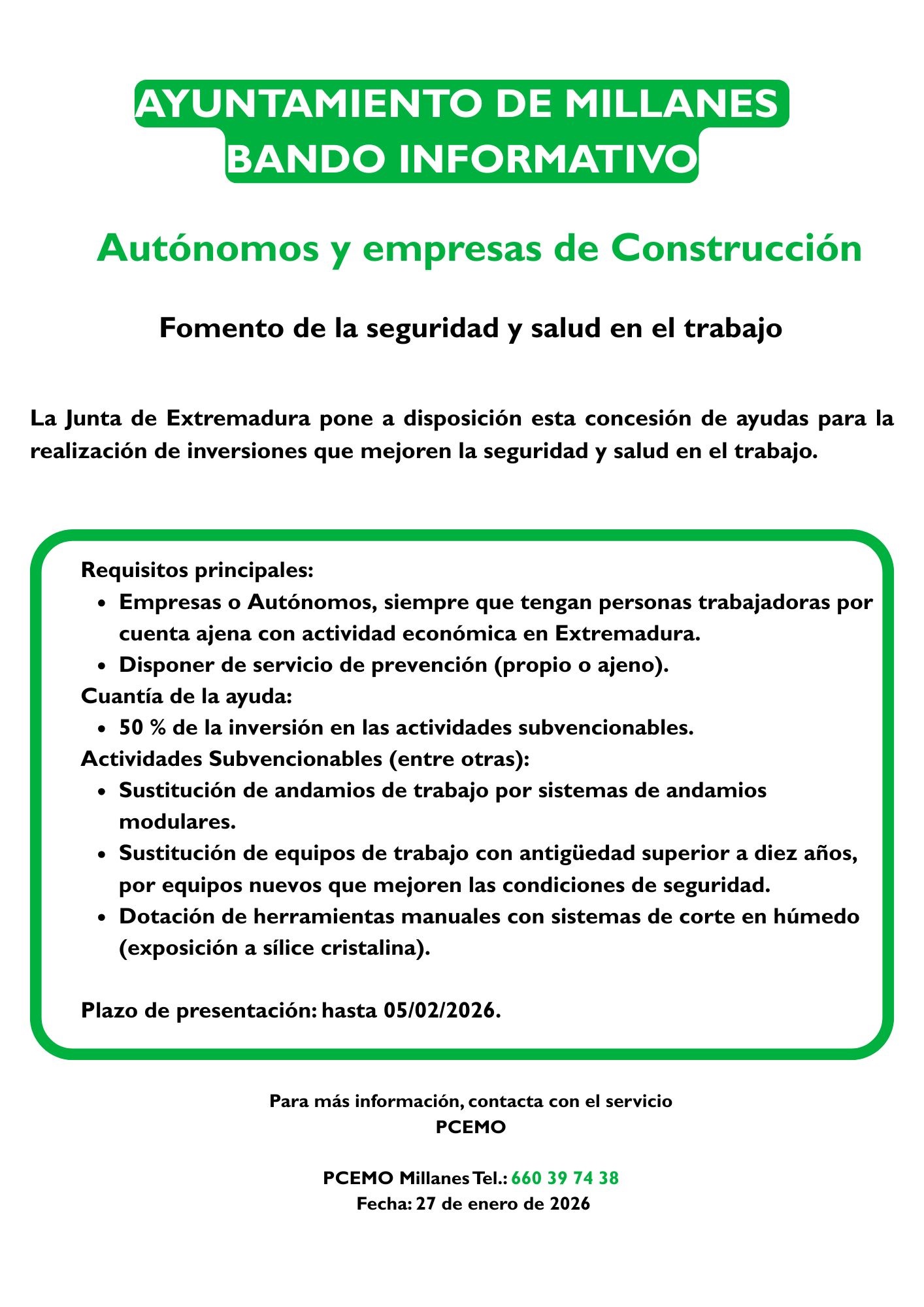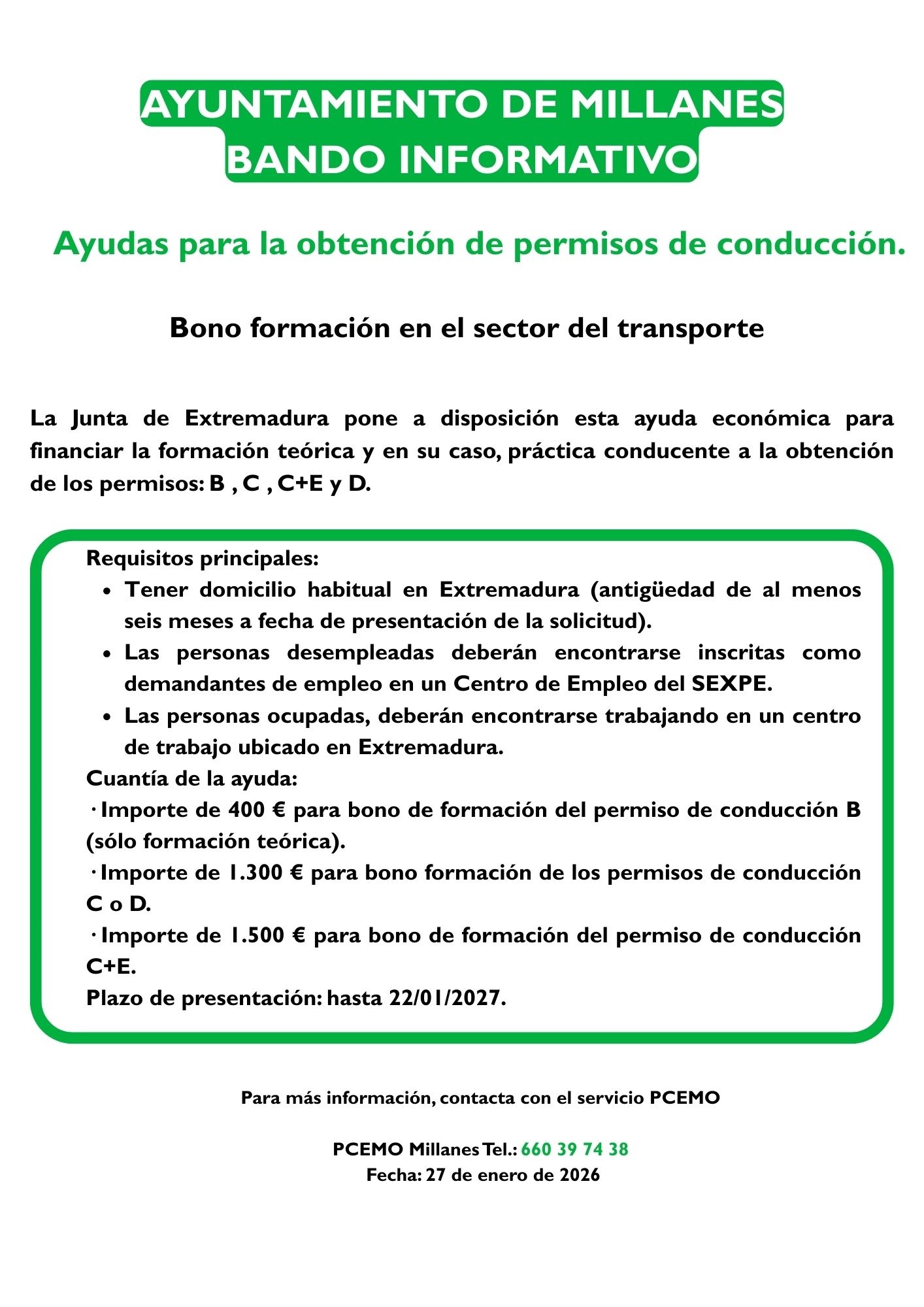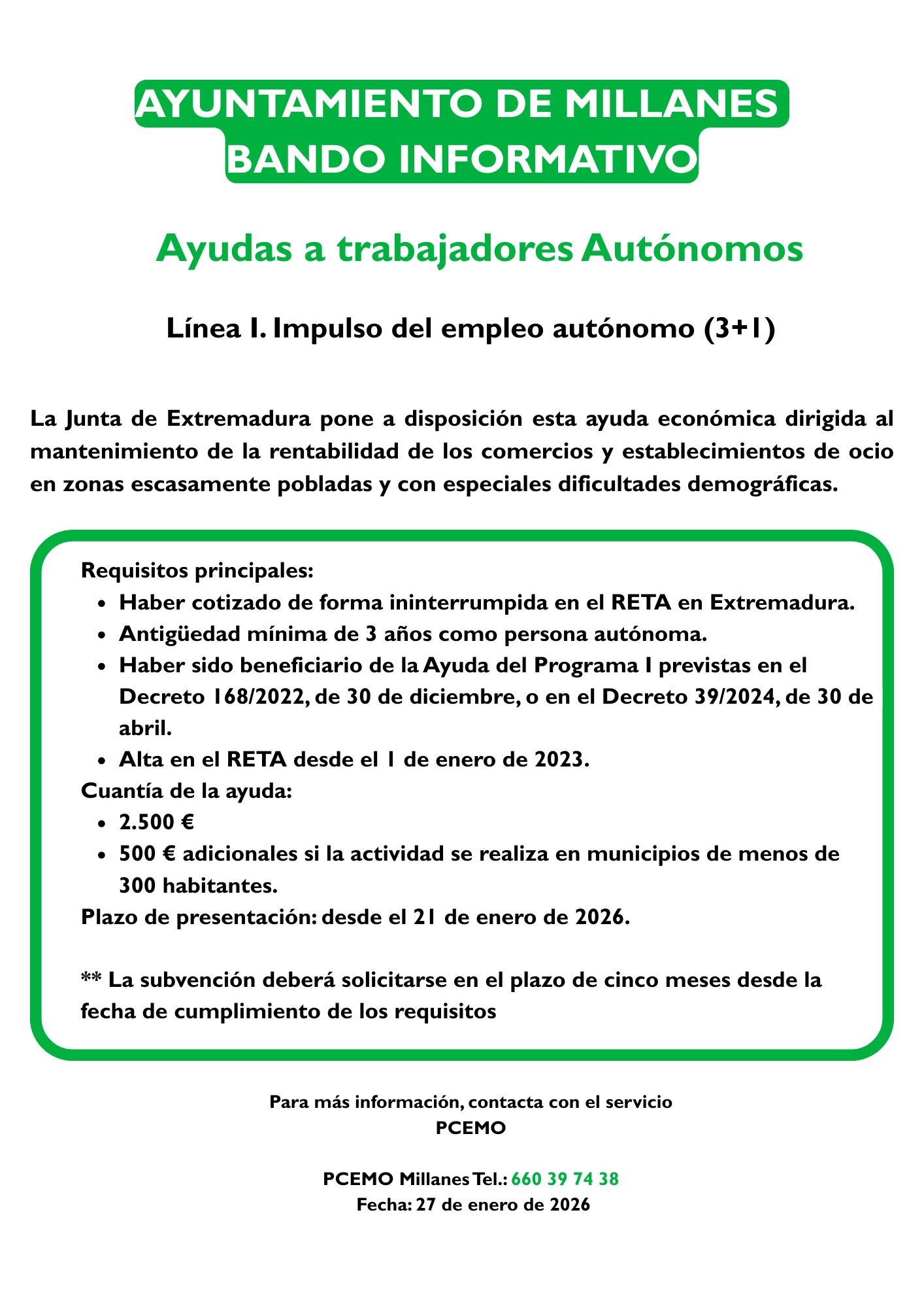 El Ayuntamiento de Millanes informa:
