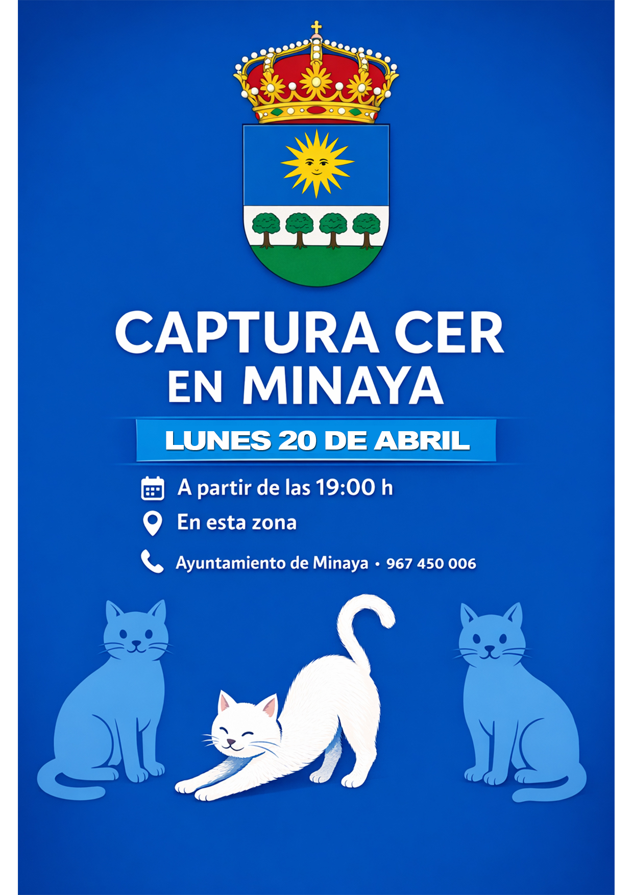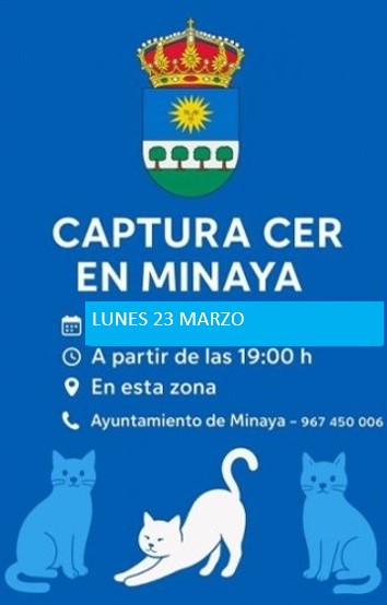 Hoy lunes 20 de abril, realizaremos una jornada de captura de gatos en la zona de la C/Estudio, como parte del programa de control ético y esterilización.