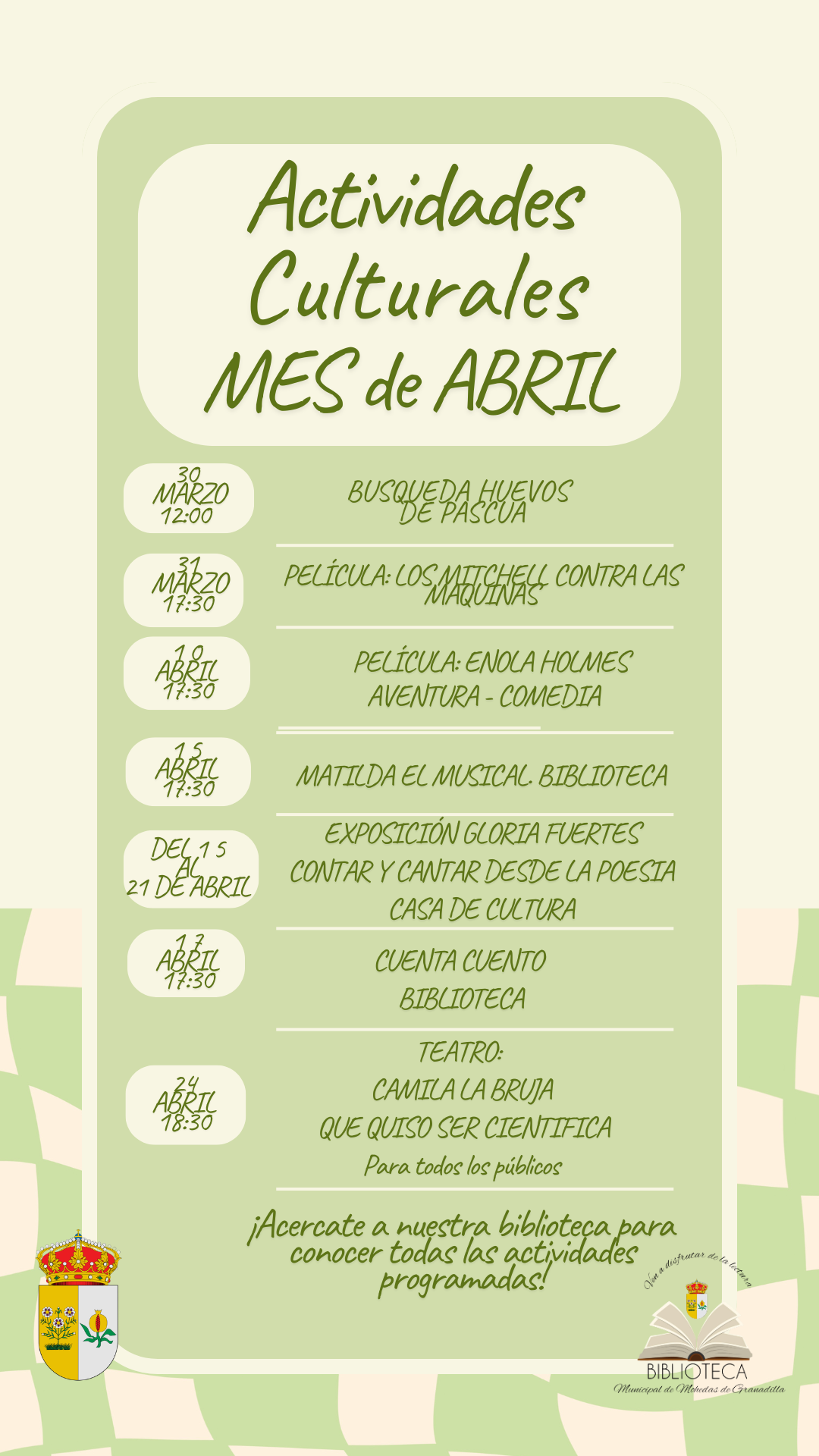 📢 Se adjunta el cartel con las actividades programadas para los próximos días y para el mes de abril.