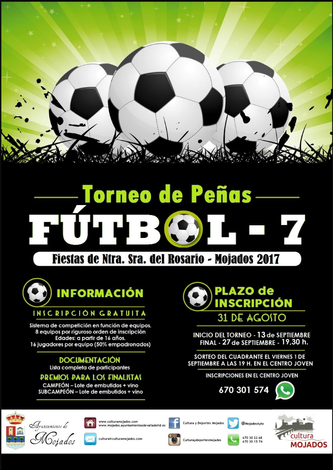 Llega el Torneo de Fútbol 7 de Peñas de las Fiestas de Mojados. Apunta tu equipo hasta el 31 de agosto en el Centro Joven. Inscripción gratuita.