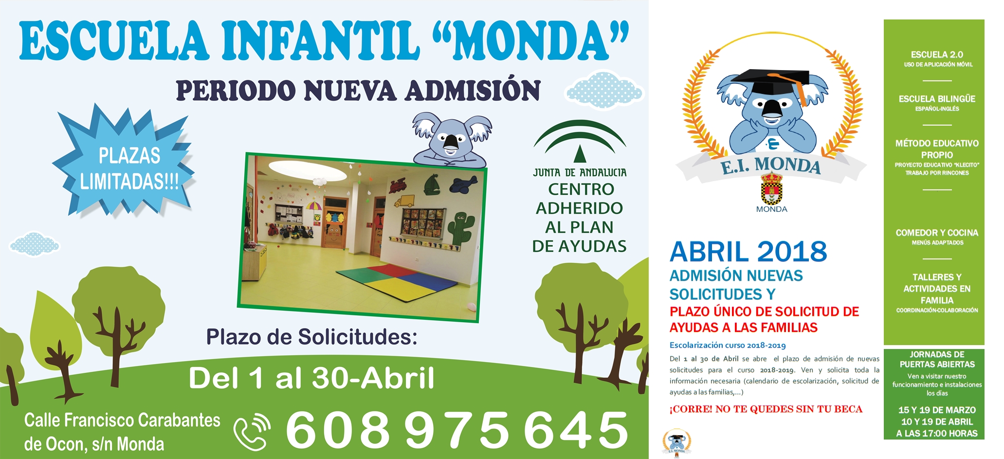 APERTURA PERÍODO NUEVA ADMISIÓN ESCUELA EDUCACIÓN INFANTIL "MONDA"