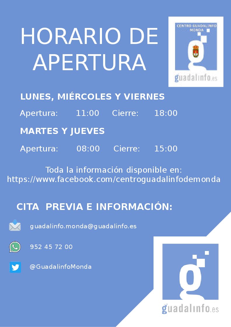 Debido a la situación de pandemia y restricciones en el municipio , el servicio Guadalinfo será de forma telefónica y/o telemática.