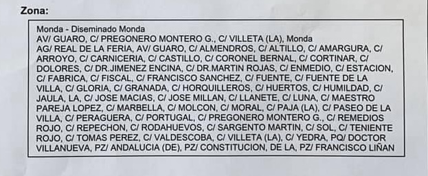 Las zonas afectadas son las siguientes: