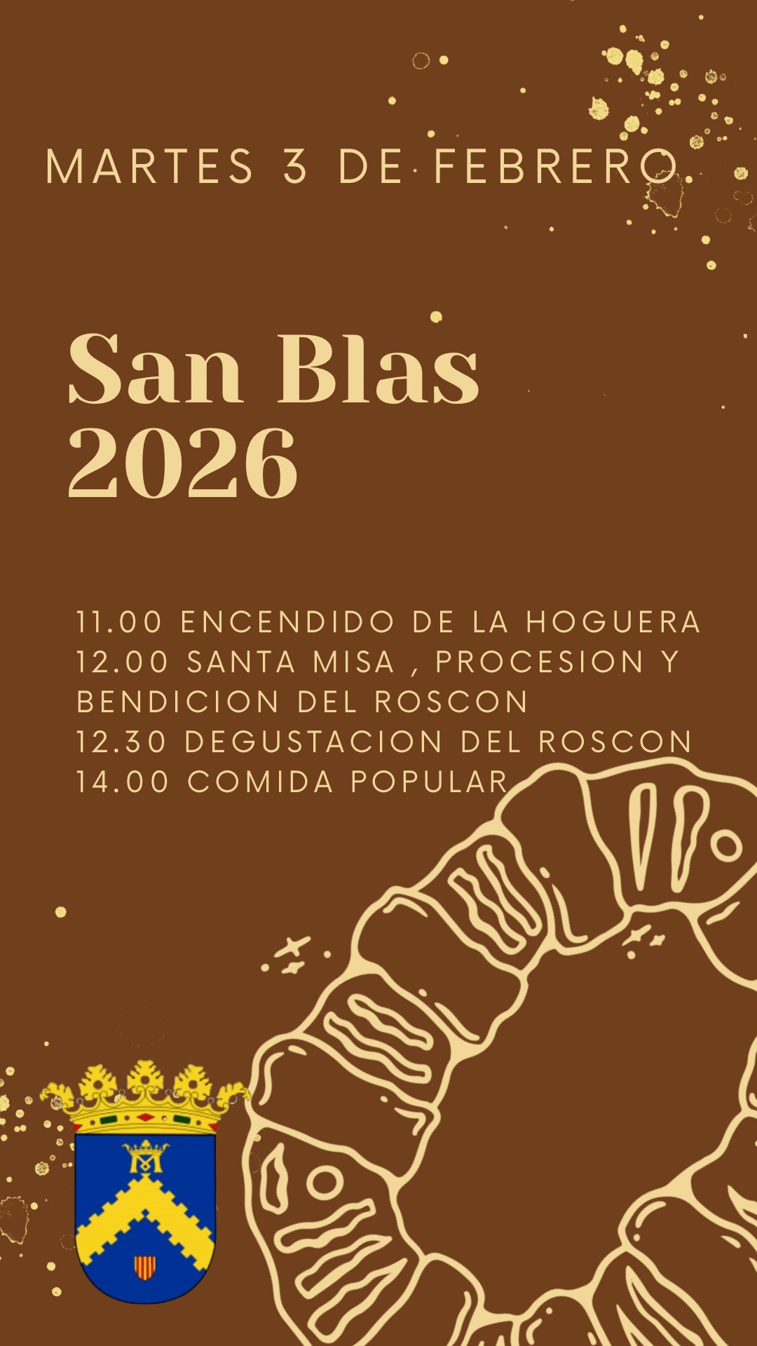 Mañana 3 de febrero : misa a las 12h , después nos comeremos los roscones con moscatel en el bar y a las 14h COMIDA POPULAR EN LA HOGUERA 🔥 🥩🥓