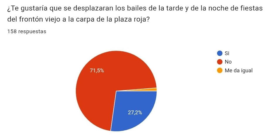 Estos son los resultados de la encuesta que preguntaba ¿te gustaría que se desplazaran los bailes de la tarde y de la noche de fiestas del frontón viejo a la carpa de la plaza roja?