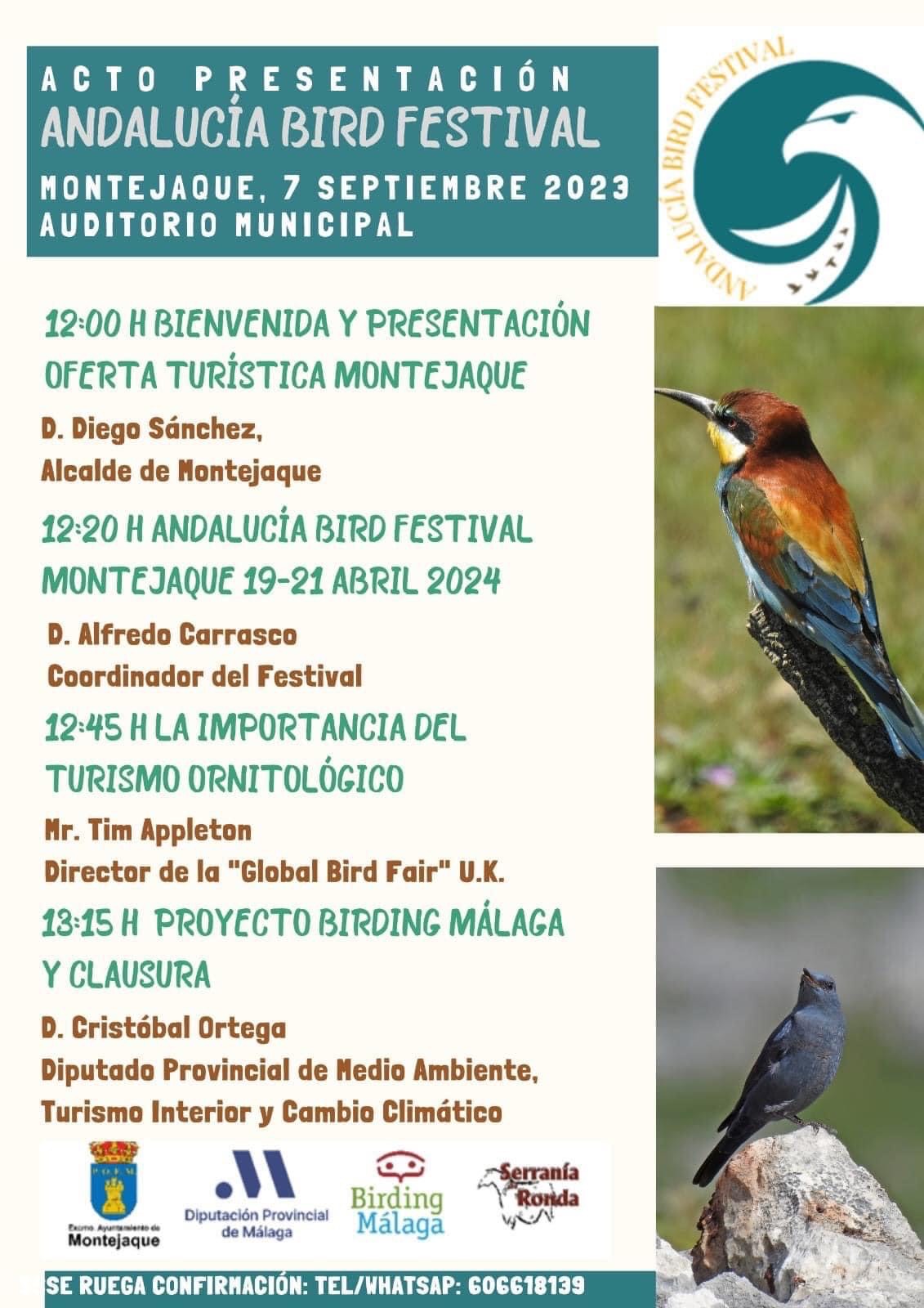 Acto de Presentación Andalucía Bird Festival el día 7 de Septiembre, en el Auditorio Municipal de Montejaque.