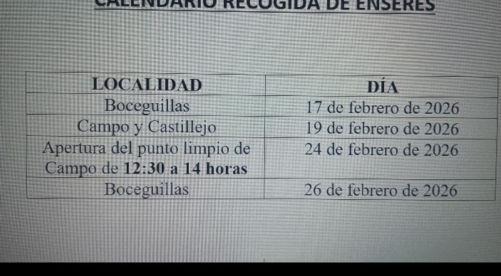 Desde la mancomunidad de Ntra.Sra.de Hornuez que el martes 30 de diciembre de 12'30 horas a 14'00 horas estará abierto el punto limpio de Campo de San Pedro, para el que quieras llevar algún enser doméstico. -