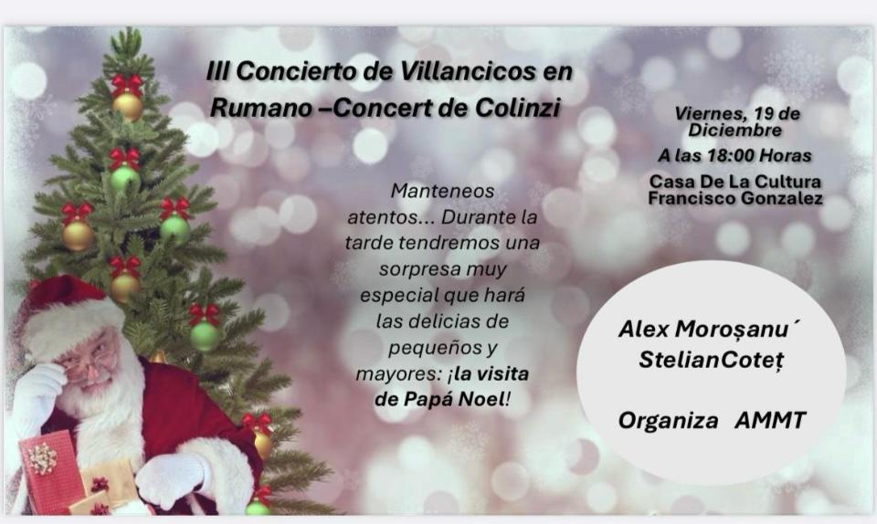 ¡Crăciun fericit! El próximo 19 de diciembre, no te pierdas el III Concierto de Villancicos en Rumano, con el que disfrutarás de un viaje musical por las raíces y cultura de nuestros vecinos ¡Y como broche final, no faltará la visita de Papá Noel!