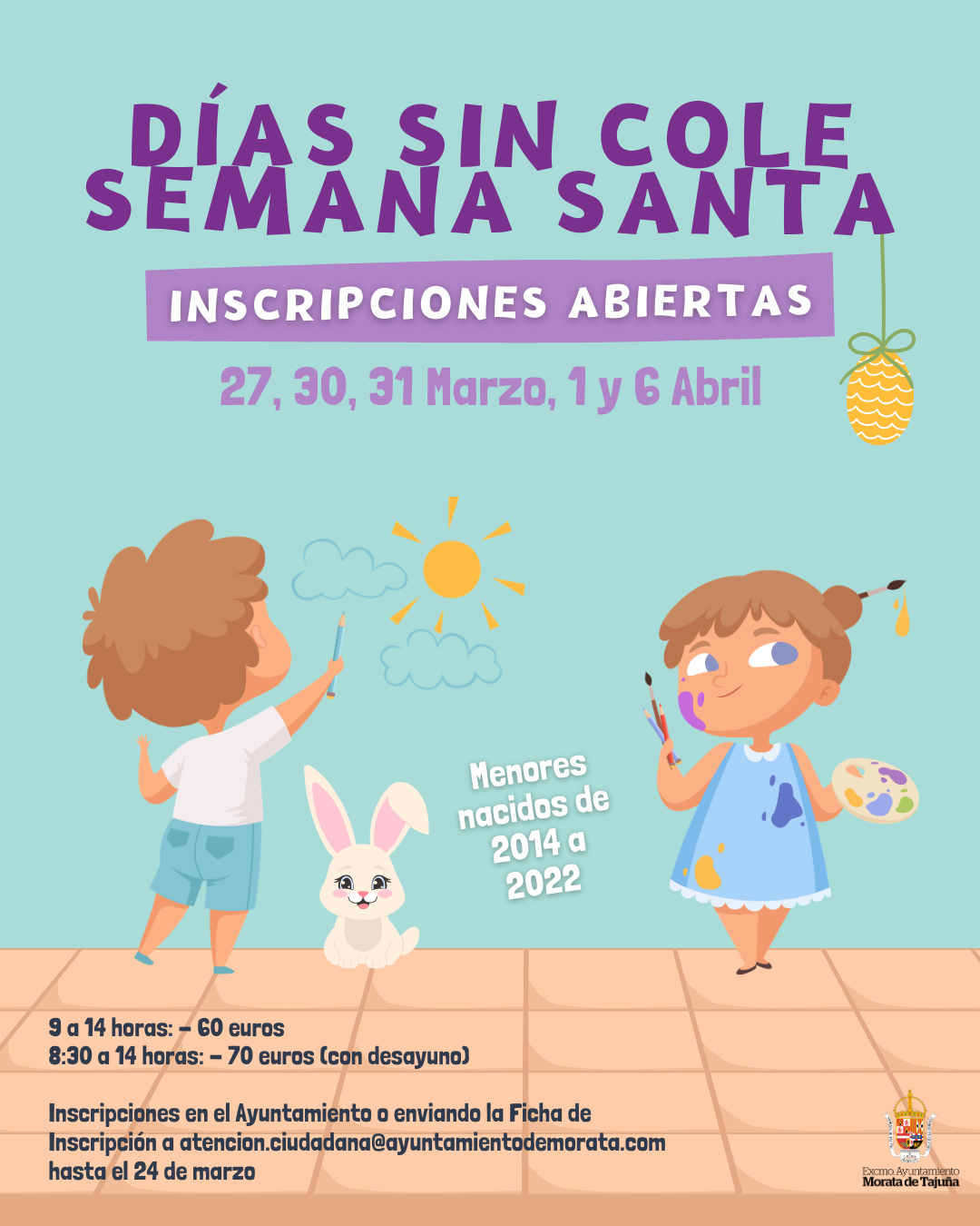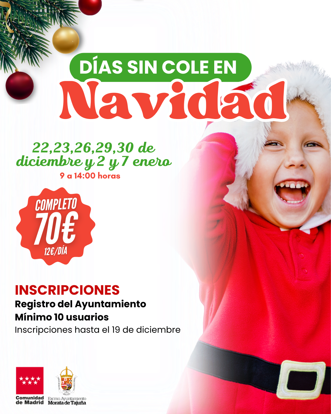 Esta Navidad, las mañanas de los más pequeños tienen un nombre: ¡Los Días sin Cole! del 22 de diciembre al 7 de enero, el Ayuntamiento de Morata te ayuda a conciliar la vida laboral y familiar con unas colonias urbanas para los más pequeños durante los días laborales pudiendo inscribir a tus hijos todas las jornadas o sólo días concretos.