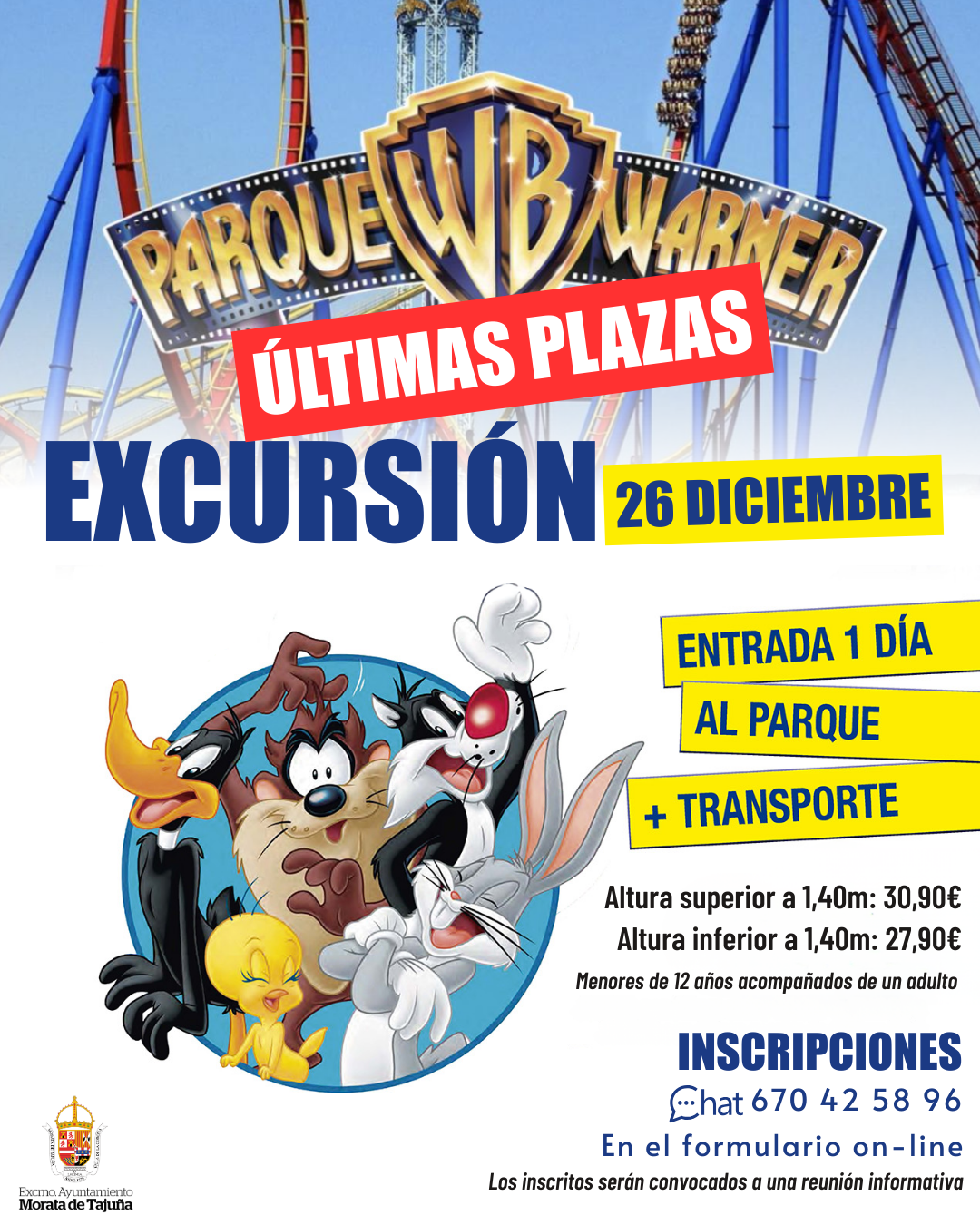 ¡Últimas plazas para la excursión al Parque Warner el 26 de diciembre!