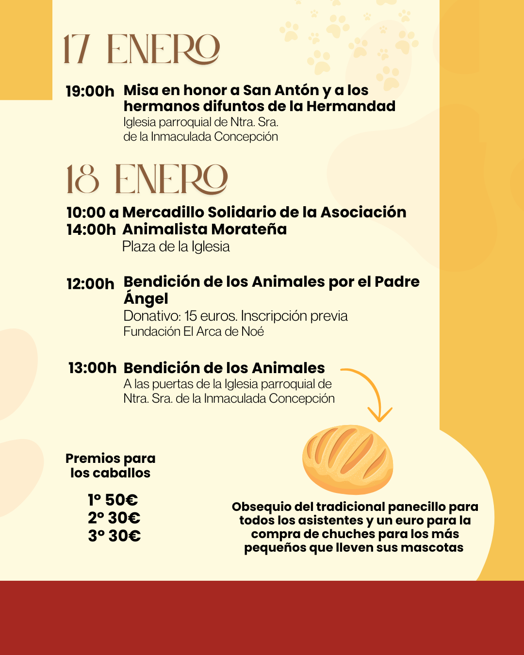Este fin de semana, Morata celebra San Antón, el santo patrón de los animales y lo hace con las tradicionales misas organizadas por la Hermandad de San Isidro y San Antón con el domingo 18 como jornada principal con la bendición de los animales a las puertas de la iglesia y en la Fundación 'El Arca de Noé', además del reparto de panecillos el mercadillo solidario de AMA o los premios para los caballos.