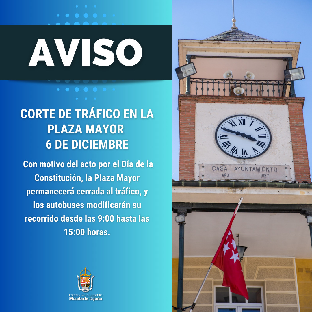 Con motivo del acto institucional por el 47º aniversario de la Constitución, la plaza Mayor permanecerá cortada al tráfico rodado entre las 9 y las 15 horas.