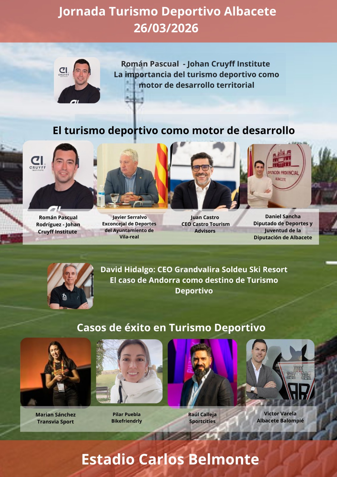 Para el día 26 de marzo, en el Estadio Carlos Belmonte de Albacete, se ha preparado una Jornada muy atractiva de turismo deportivo, con ponencias de varios expertos en la materia, mesas redondas y la tarde se aprovechará para que los asistentes puedan reunirse, en un workshop profesional con las empresas asistentes.