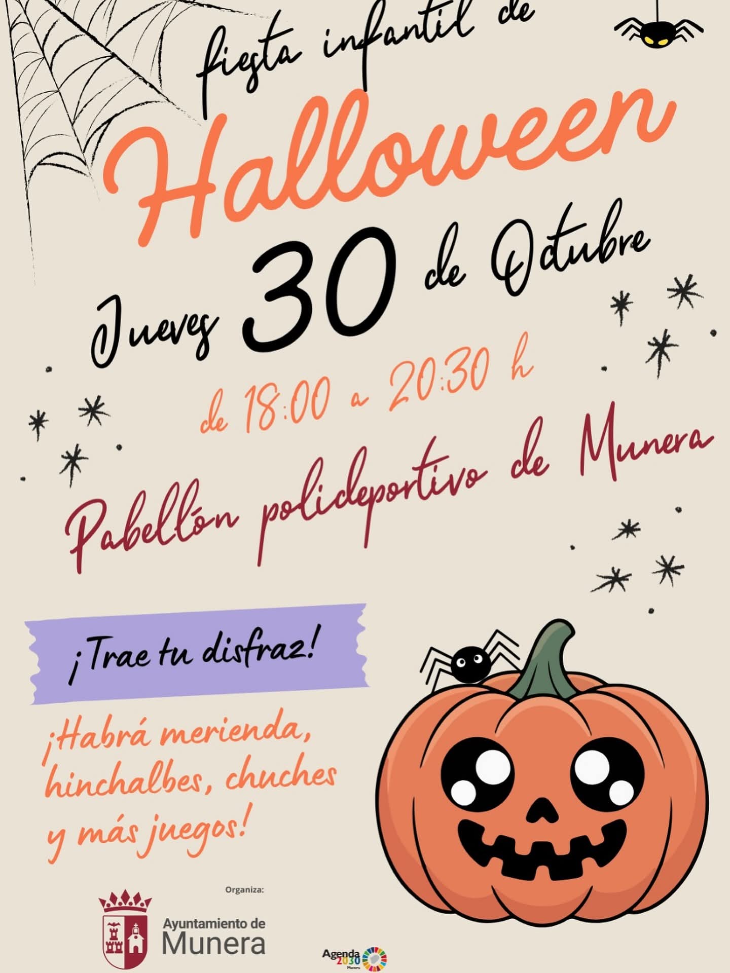 Por eso, este jueves 30 de octubre, el Pabellón Polideportivo de Munera se llena de magia, sustos y mucha diversión con la Fiesta Infantil de Halloween