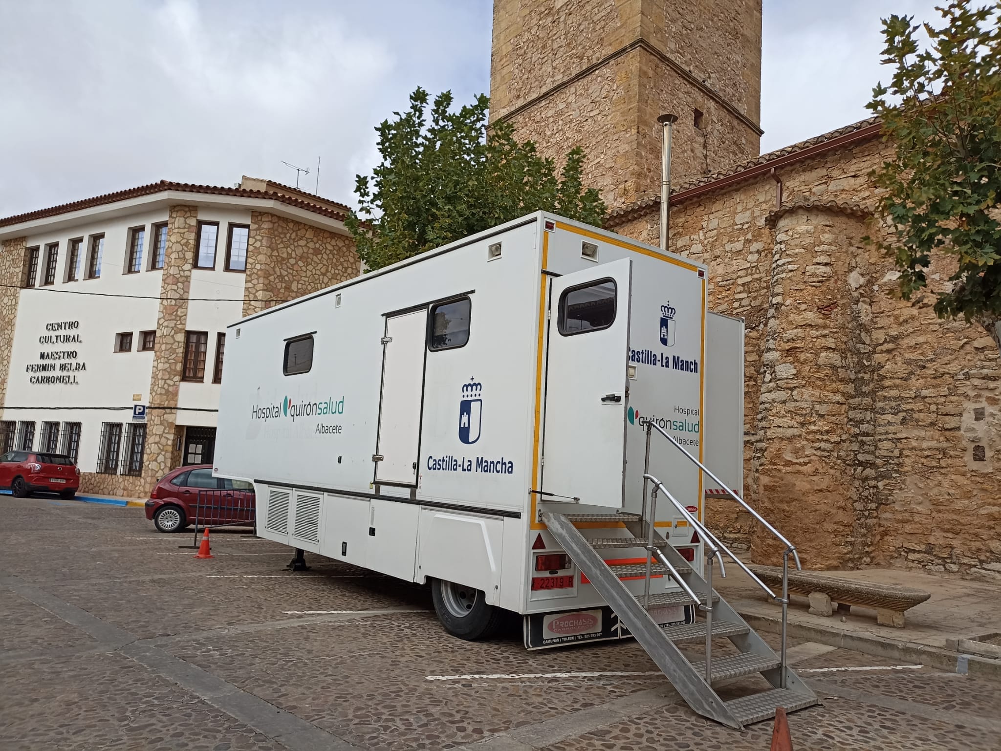 La Unidad Móvil del Programa de Detección Precoz de Cáncer de Mama, instalada detrás de la iglesia en Munera, finaliza ya su servicio.