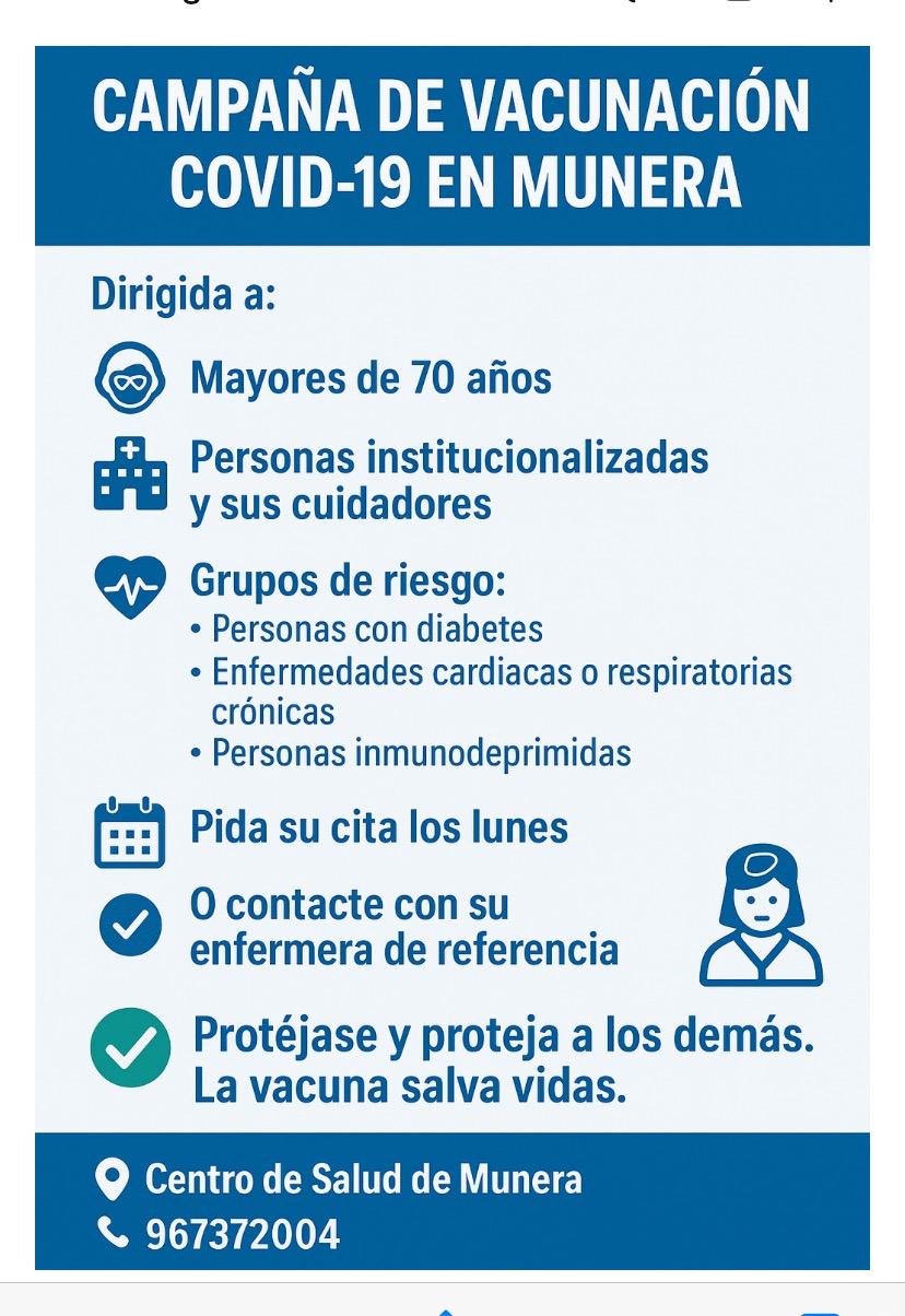 Ya puedes vacunarte contra la gripe y la COVID-19 en el Centro de Salud de Munera.