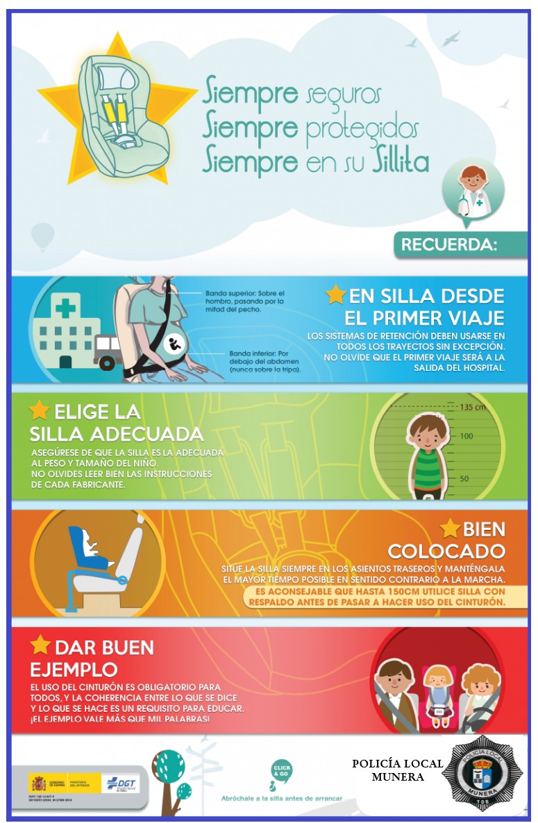Desde la Policía Local de Munera queremos recordar a todas las familias la enorme importancia de llevar siempre a los niños correctamente sujetos en sus sistemas de retención infantil. No debemos olvidar que su seguridad comienza en cada trayecto, por corto que sea.