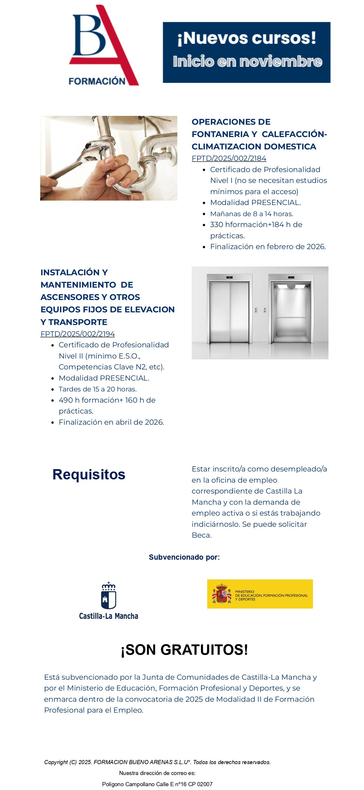 CURSOS GRATUITOS: Fontanería y Calefacción e Instalación y Mantenimiento de Ascensores