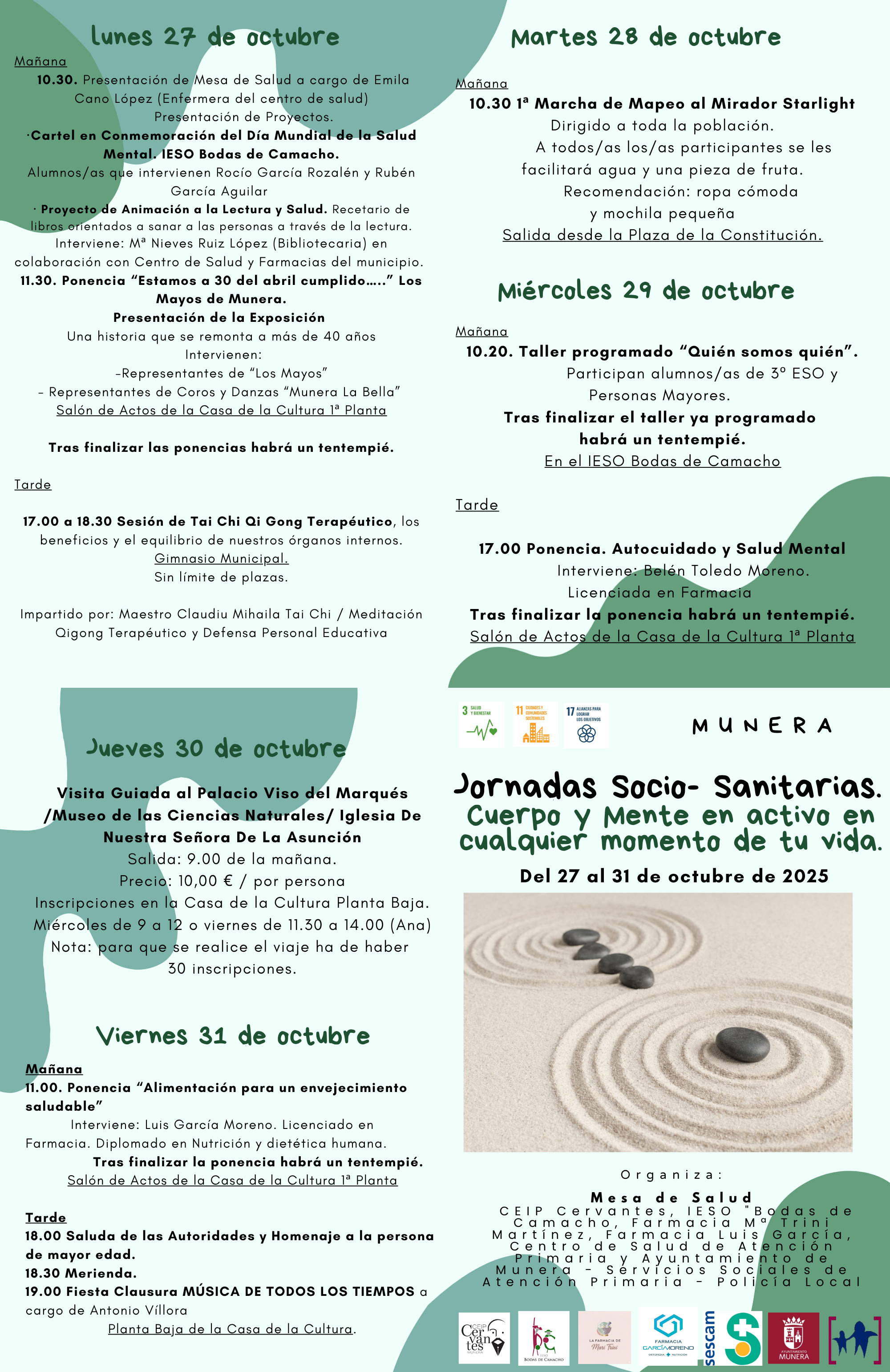 Del 27 al 31 de octubre, te invitamos a participar en unas jornadas dedicadas al bienestar físico y mental, con actividades pensadas para todas las edades.