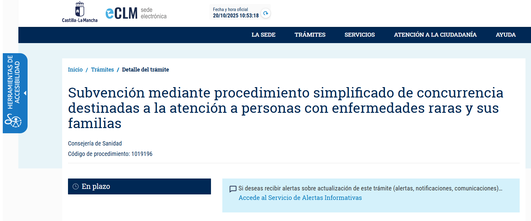 La Dirección General de Humanización y Atención Sociosanitaria de la Junta de Comunidades de Castilla‑La Mancha ha publicado la Resolución de 25/09/2025 por la que se convoca la concesión de subvenciones destinadas a la atención de personas con enfermedades raras y sus familias en Castilla-La Mancha, para el desarrollo de actividades, prestación de servicios y adquisición de material durante el año 2025.