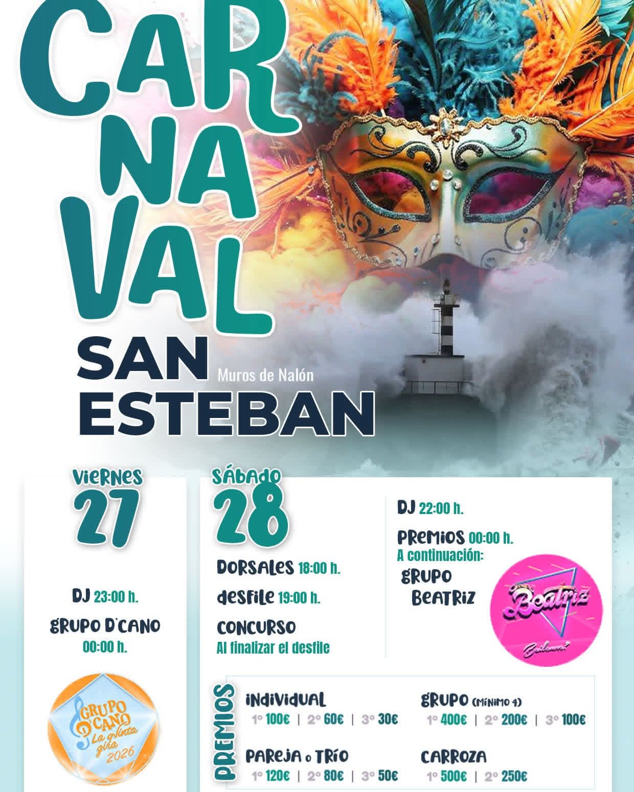 ๐ Sรกbado de dorsales, desfile, concurso, premios y mรกs mรบsica para seguir la noche con GRUPO BEATRIZ