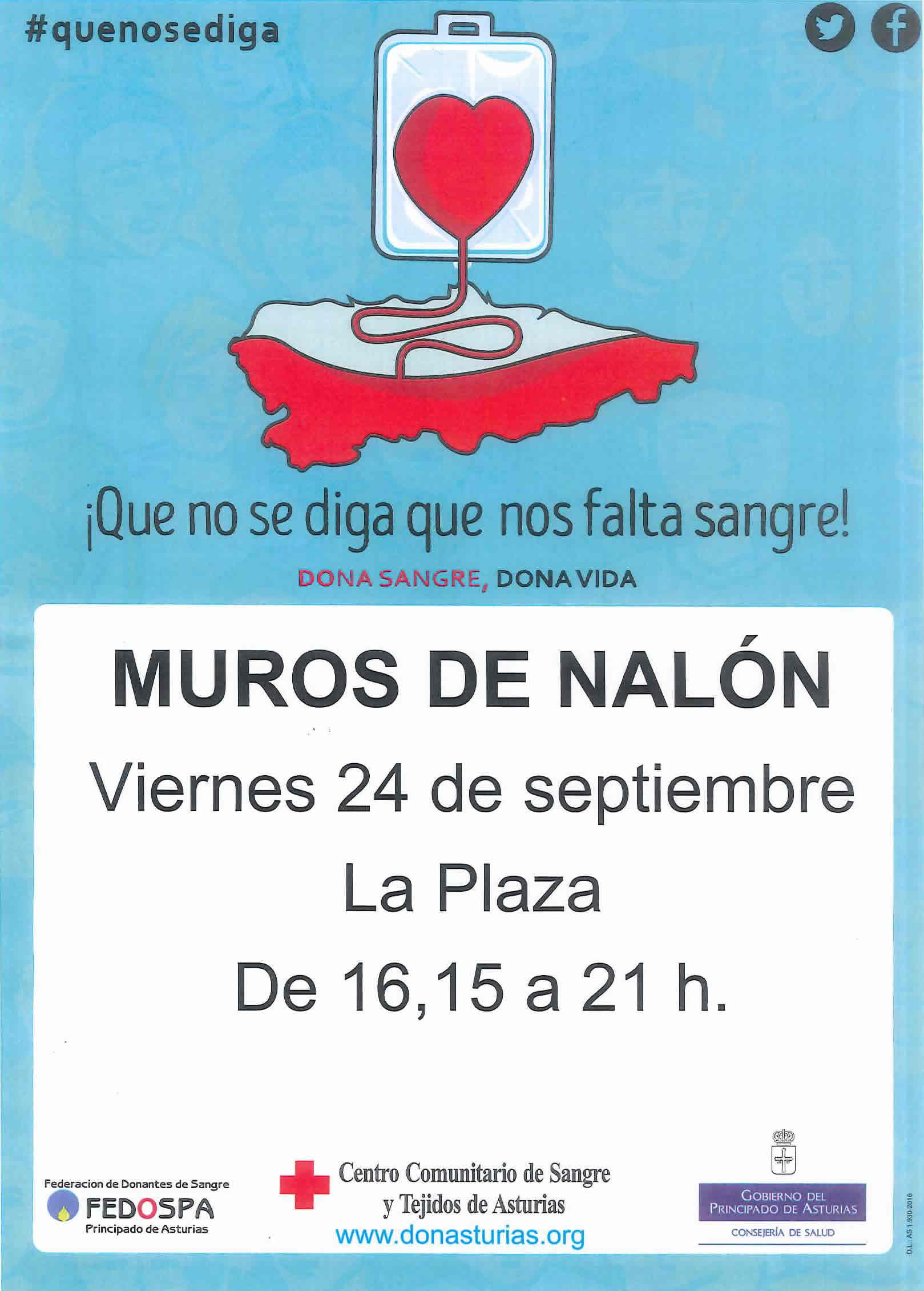 La unidad móvil de Donación de Sangre del Centro Comunitario de Sangre y Tejidos de Asturias, estará el próximo viernes 24 de septiembre de 2021 de 16:15 a 21:00 horas en la Plaza de Muros.