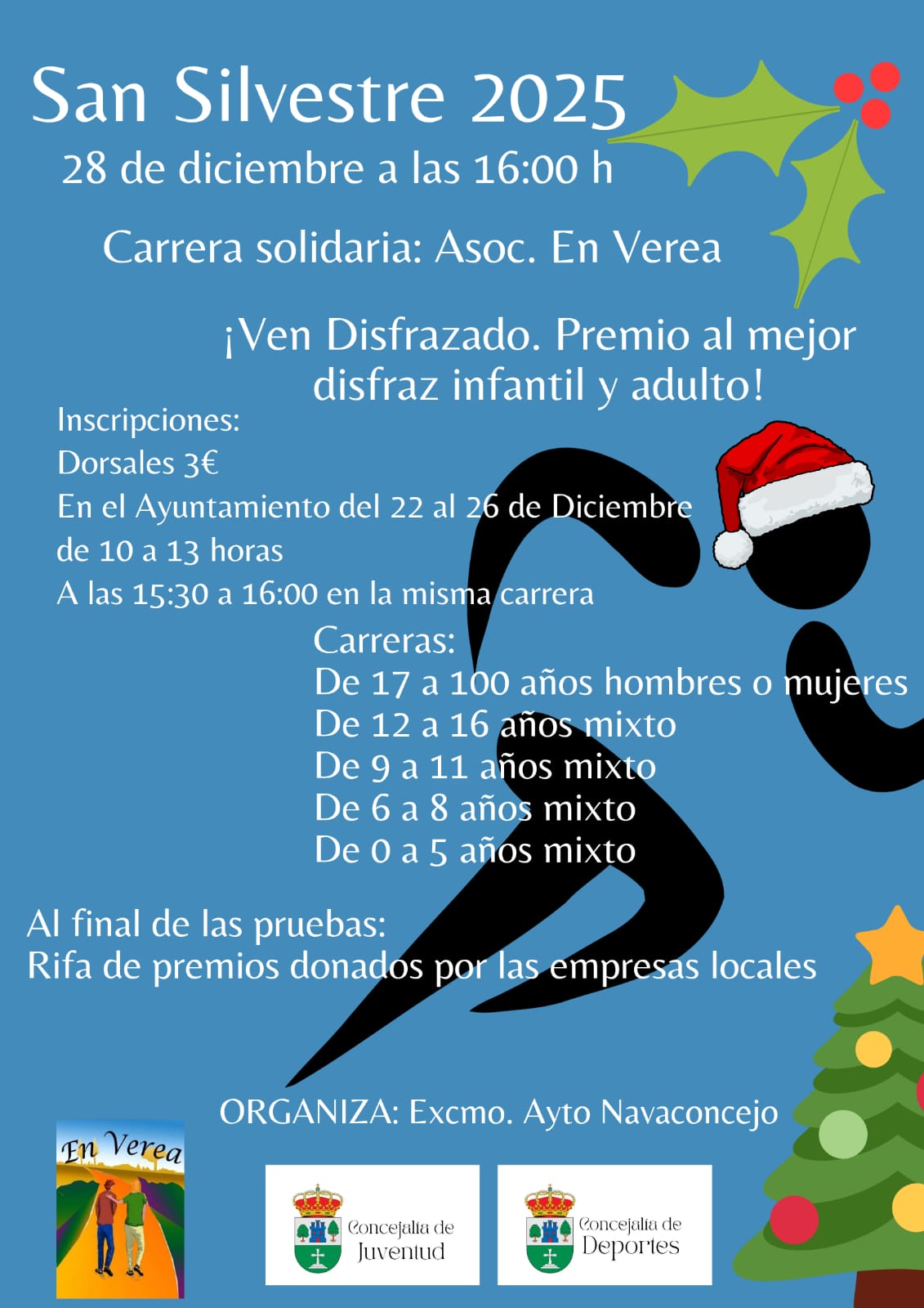 El Ayuntamiento informa que el próximo domingo, 28 de diciembre de 2025, a las 16:00 h se celebrará la San Silvestre solidaria a favor de la Asociación En verea.