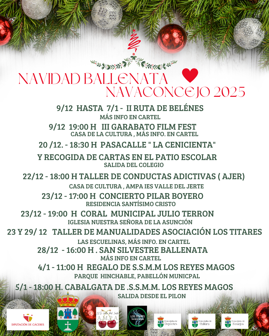 📢 Se informa a la ciudadanía que el sábado, 27 de diciembre de 2025, a las 18:00 h, en el Pabellón Municipal, se celebrarán Bailes Navideños con la actuación de "Las niñas de Lourdes".