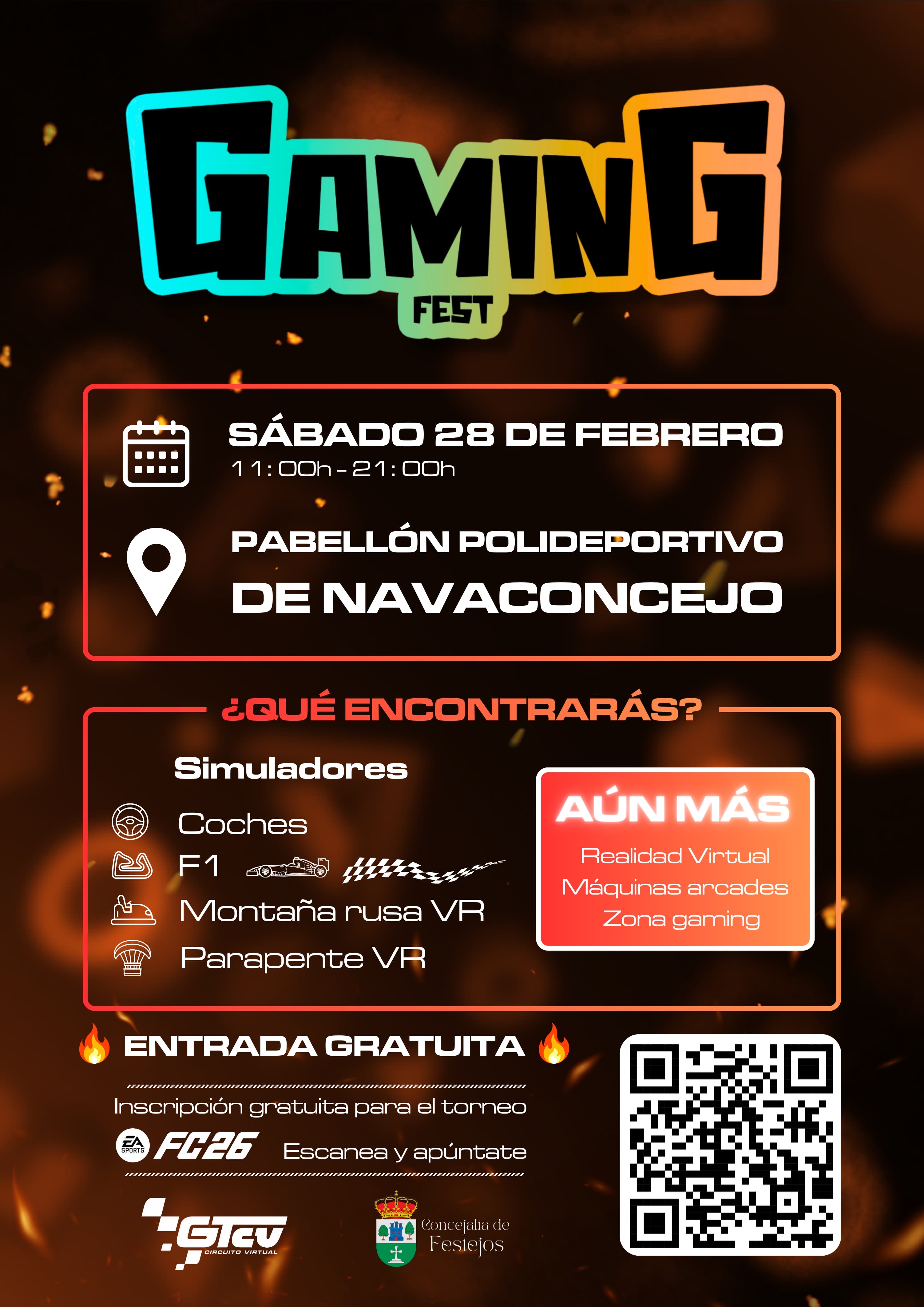 El sábado, 28 de febrero de 2026, de 11:00 a 21:00 h, se celebrará el Gaming Fest en el Pabellón Polideportivo.