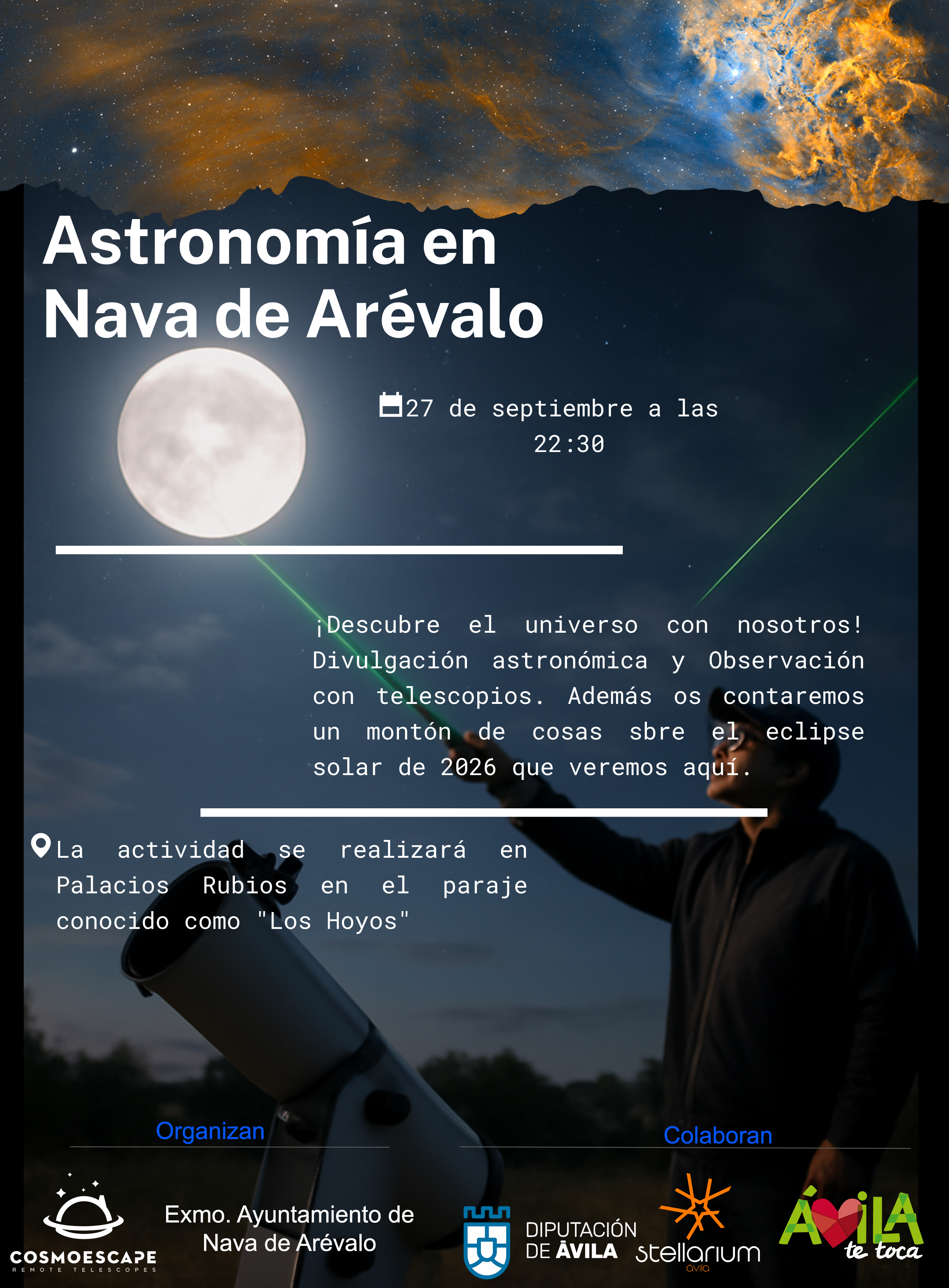 Este SABADO 27 de septiembre a las 22:30 h tendrá lugar una jornada de astronomía en el paraje de “Los Hoyos” (Palacios Rubios).