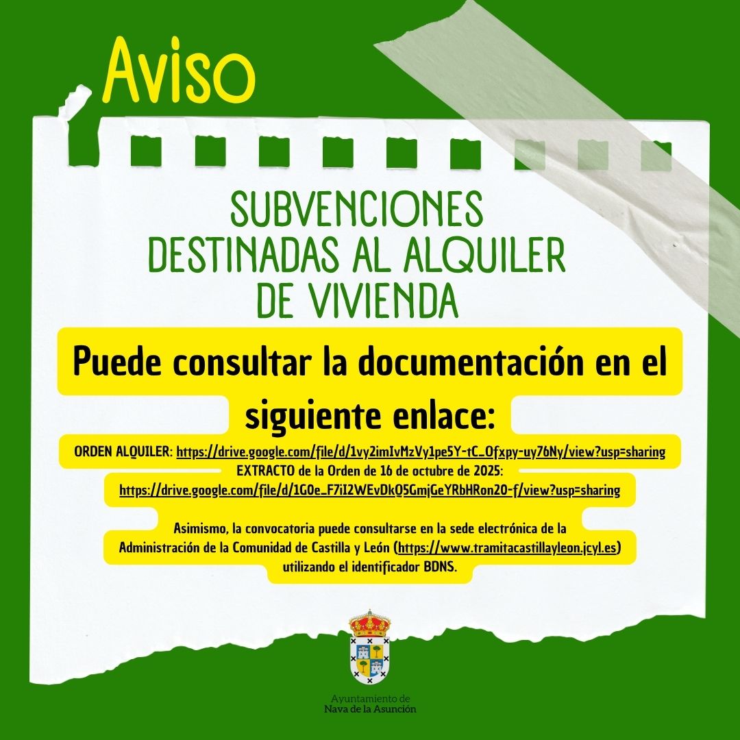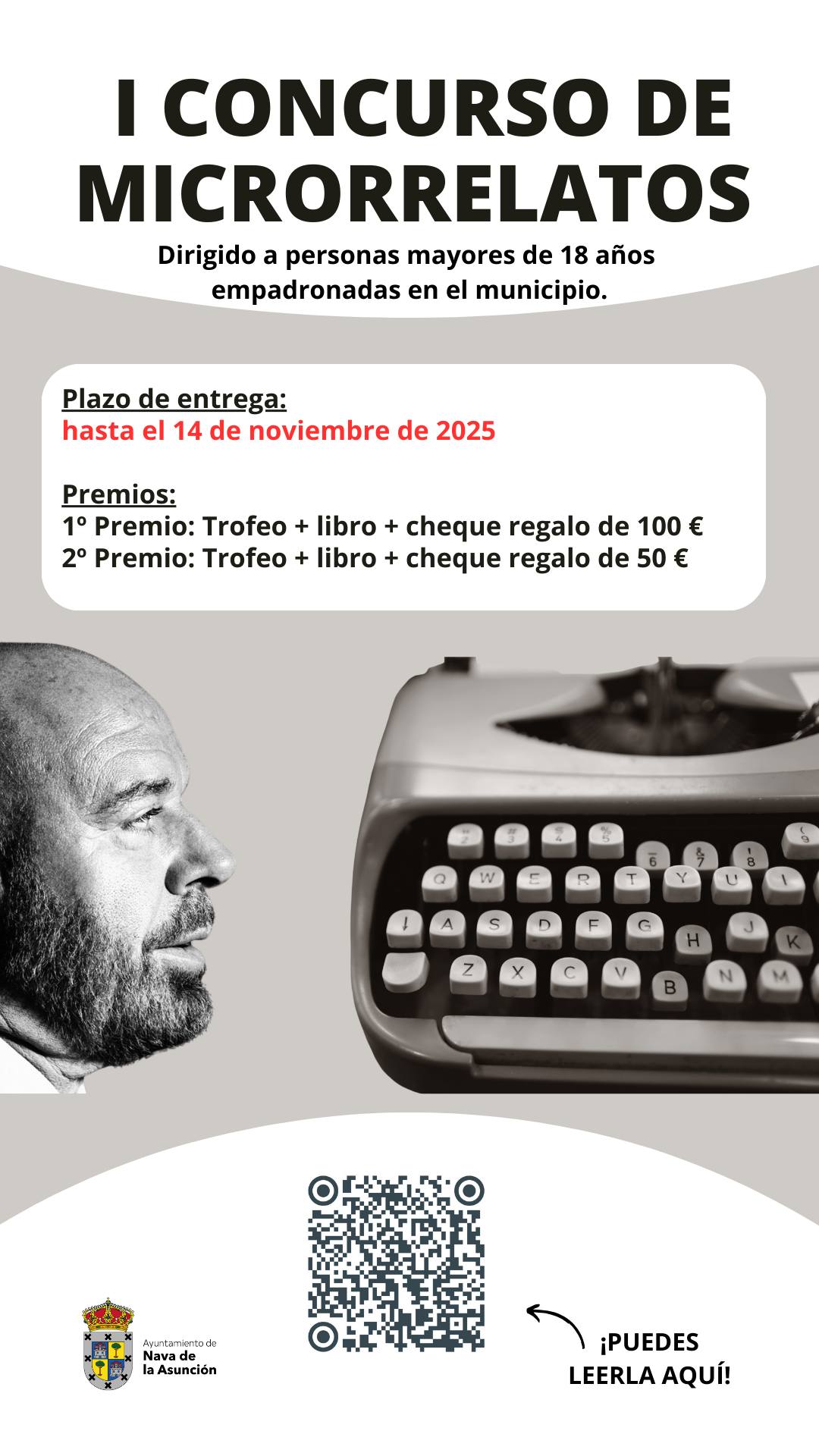 - I Concurso de Microrrelatos: para las personas empadronadas en Nava de la Asunción, mayores de 18 años (fecha límite: 14 de noviembre).