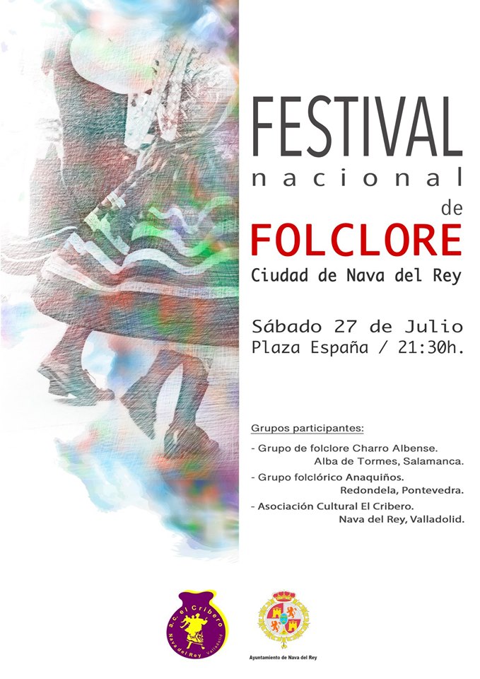 FESTIVAL NACIONAL DE FOLCLORE2019-07-27 12:04:01CulturaLa Asociación El Cribero organiza el Festival de Folclore, que tendrá lugar hoy -sábado, 27 de julio- en la Plaza España y en el que actuarán el grupo folclórico Anaquiños de Redondela (Pontevedra), el grupo de folclore Charro Albense de Alba de Tormes (Salamanca) y la asociación El Cribero de Nava del Rey.