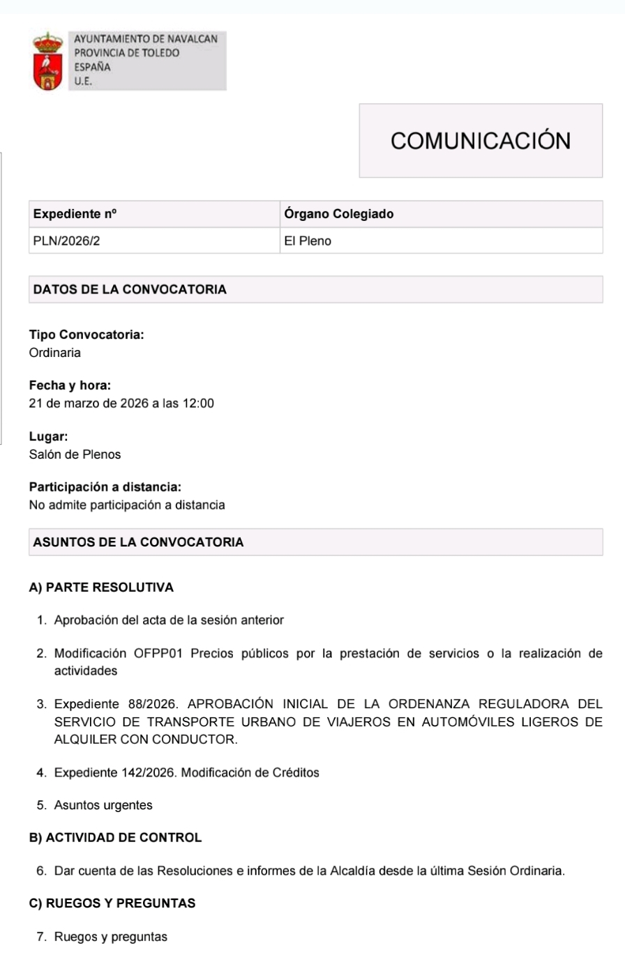 Se informa al público en general que está prohibido aparcar en la Plaza del Ayuntamiento;