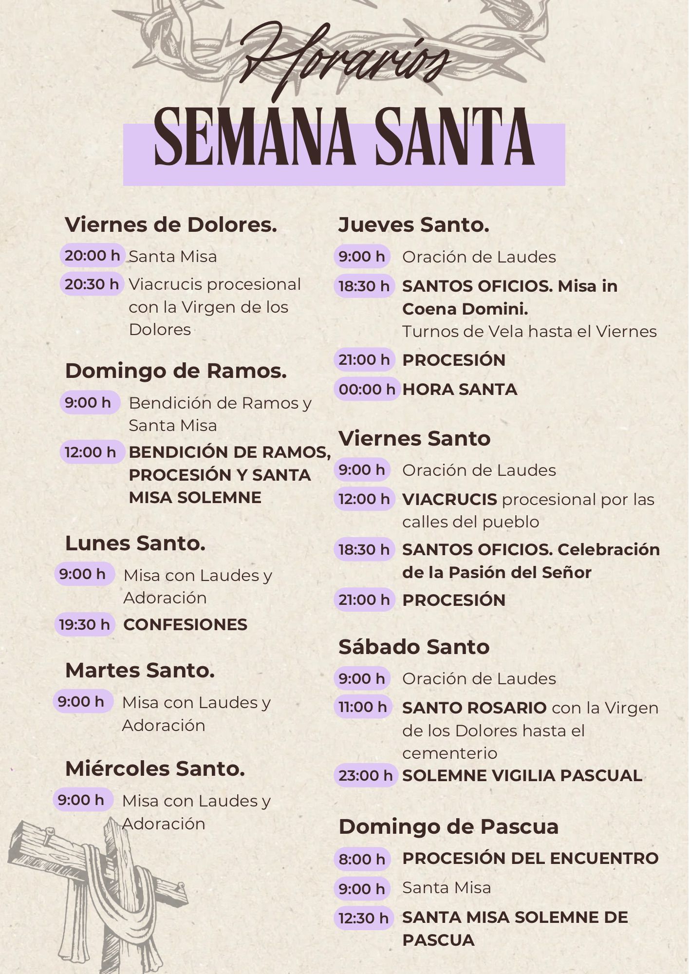 Domingo 29 Marzo; desde las 09:00 de la mañana hasta fin de bendición de ramos.