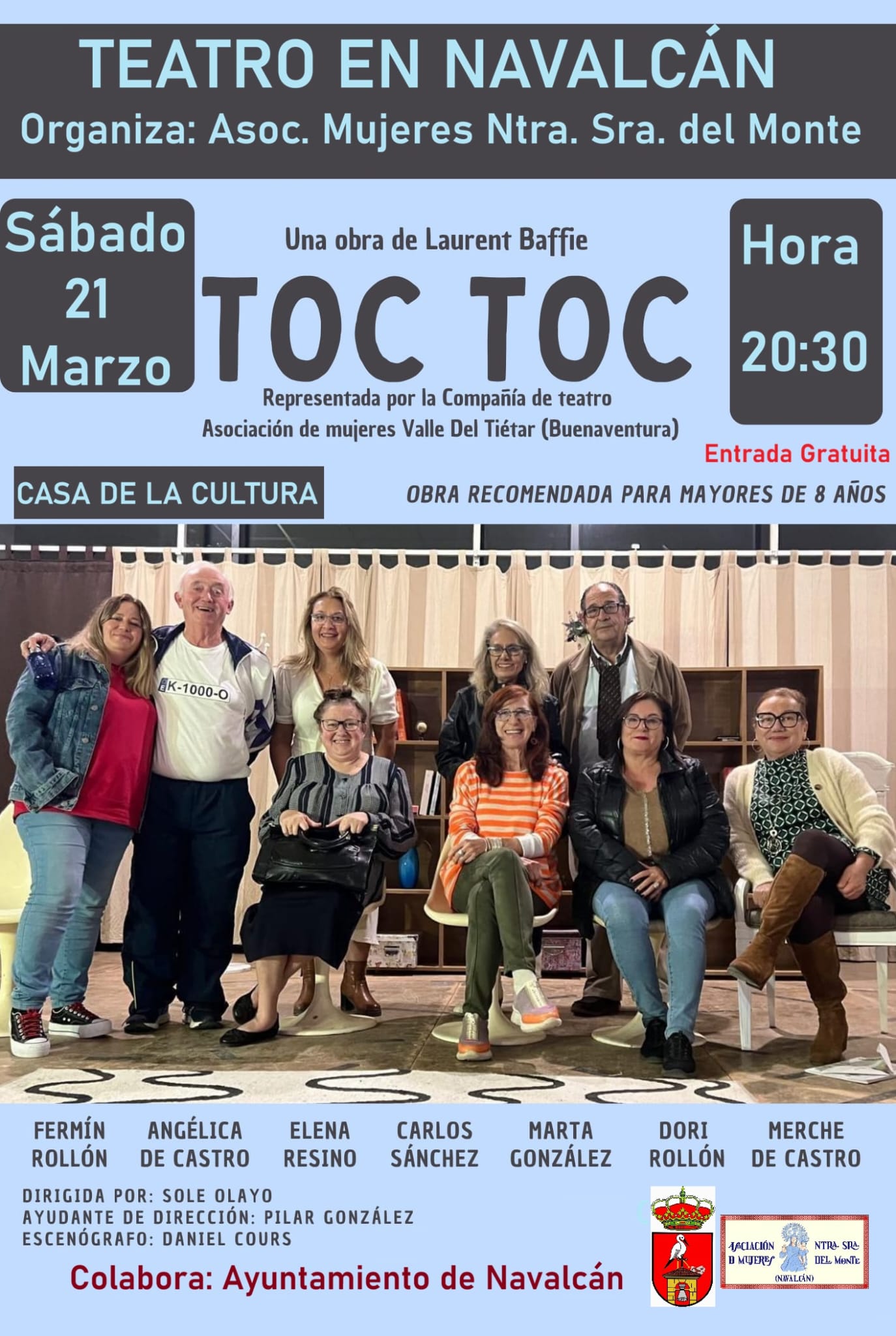 Mañana sábado en el auditorio de la Casa de la Cultura a las 20:30 horas, podrás disfrutar de una gran obra de teatro "TOC TOC". Una obra con historias del día a día, entretenida y muy divertida.