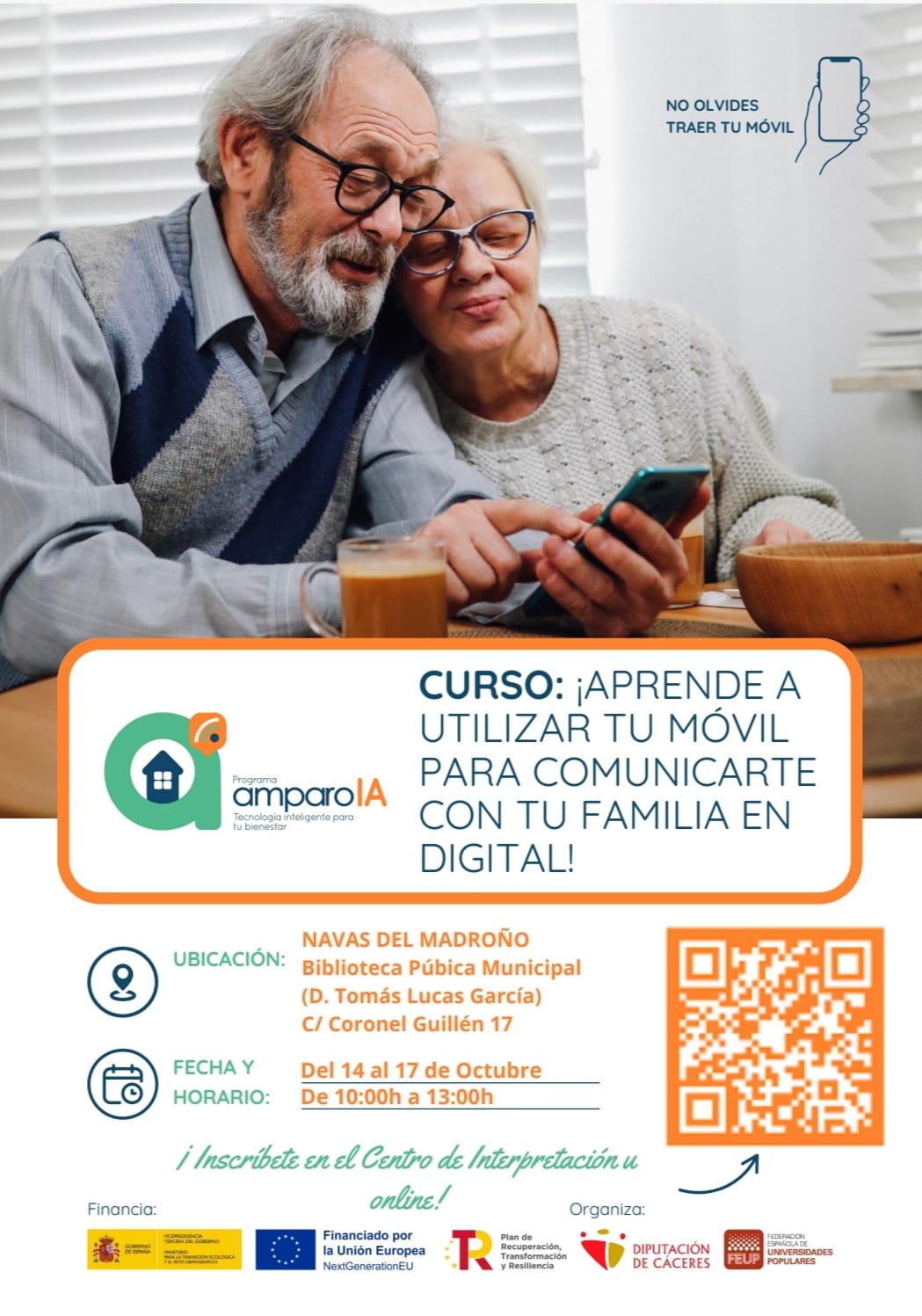 Se adjunta información del Curso: ¡Aprende a utilizar tu móvil para comunicarte con tu familia en digital!