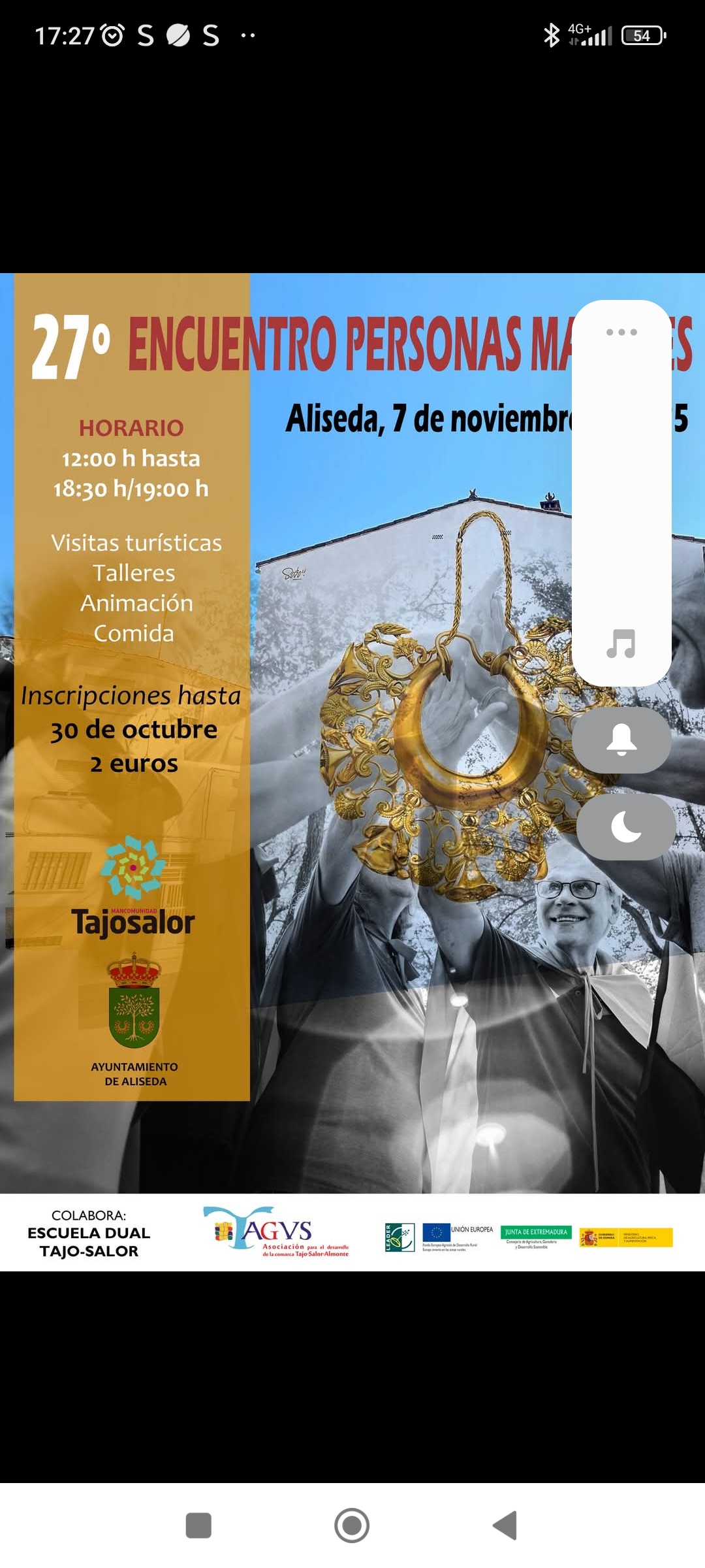 CON MOTIVO DEL ENCUENTRO DE PERSONAS MAYORES DE MANCOMUNIDAD TAJO SALOR, QUE SE CELEBRARÁ EL DÍA 7 DE NOVIEMBRE EN ALISEDA, SE COMUNICA A TODOS LOS INTERESADOS EN ASISTIR, QUE PUEDEN APUNTARSE EN EL DESPACHO DE LA ASISTENTE SOCIAL LOS LUNES Y JUEVES, HASTA COMPLETAR AUTOBÚS.
