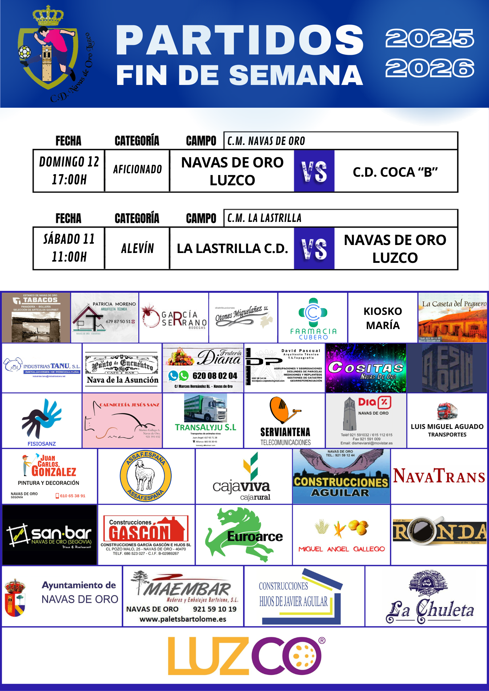 Partidos para mañana SÁBADO de los equipos locales, CD NAVAS DE ORO LUZCO
