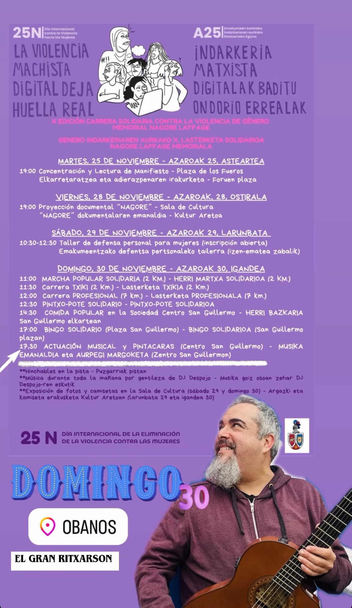 - Martes, 25 de noviembre a las 19,00h: Concentración y Lectura de manifiesto en la Plaza de los Fueros.