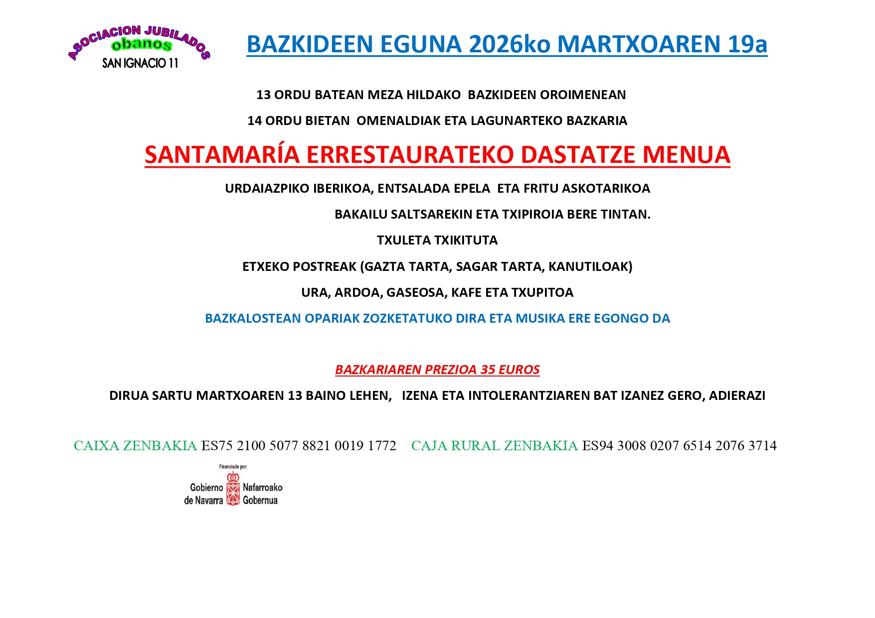 El próximo día 8 de marzo se celebrará la asamblea general anual de socios y socias de ObanosBizi a las 18:30h en la sala de cultura.